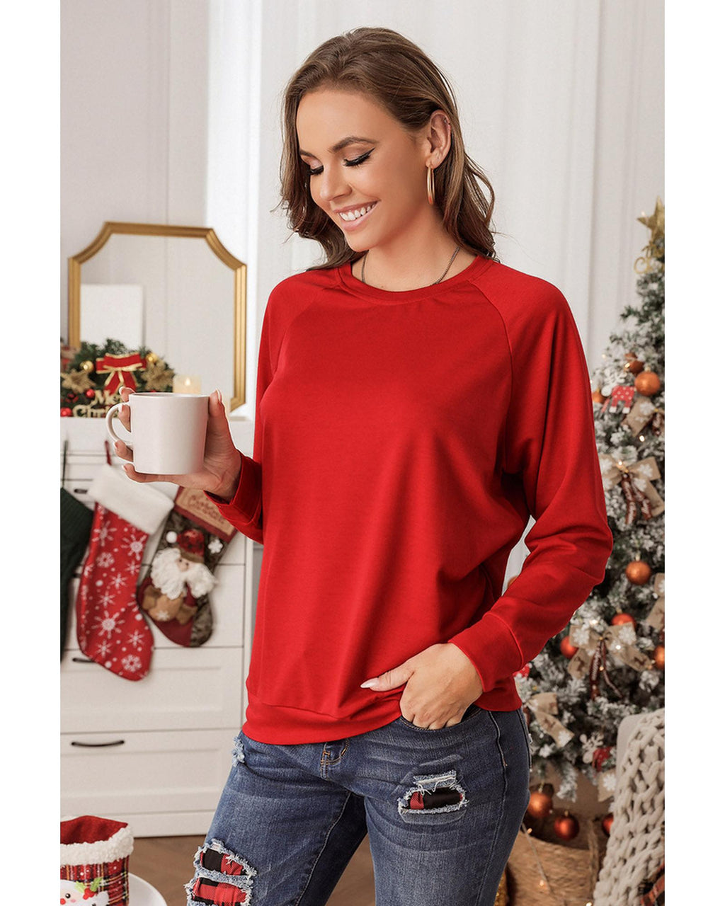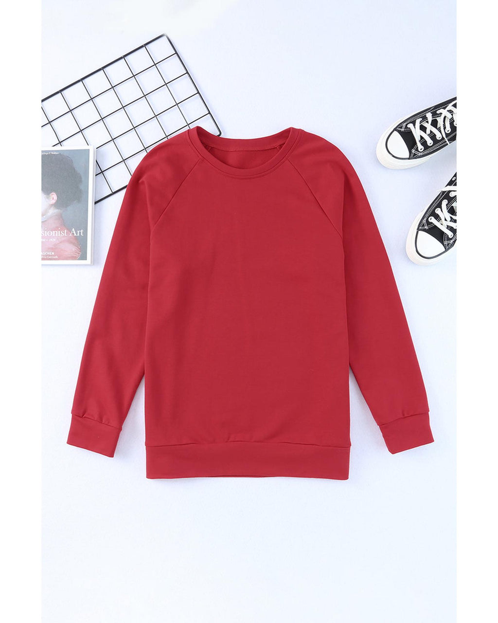 • Solid Round Neck Raglan Sleeve Sweatshirt