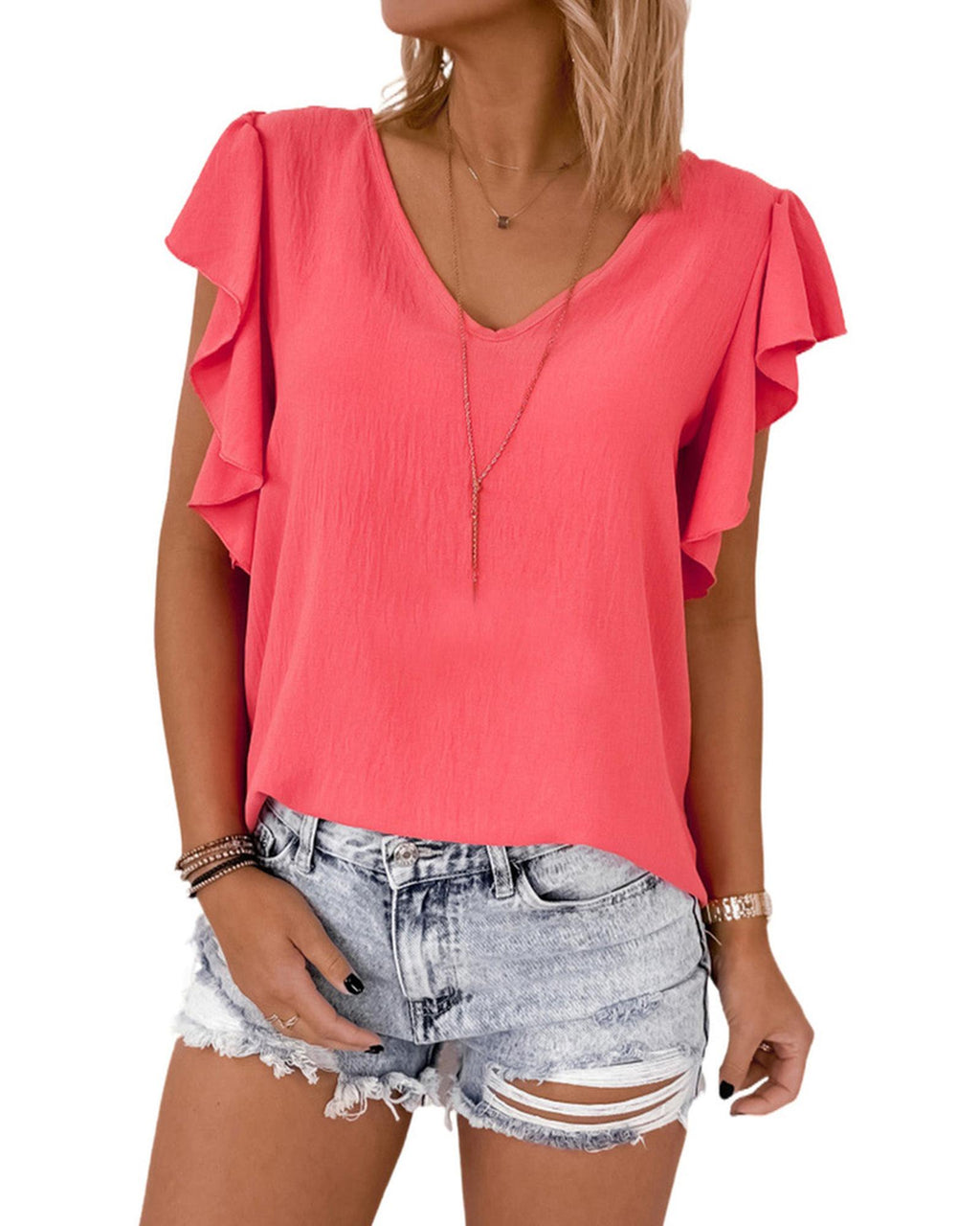 - Stylish and versatile V Neck Ruffle Sleeve Loose Top