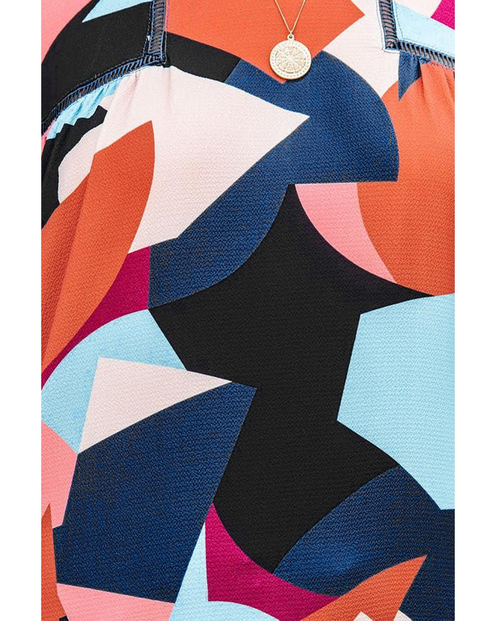 Azura Exchange Ruffled Puff Sleeve Abstract Pattern Blouse - S