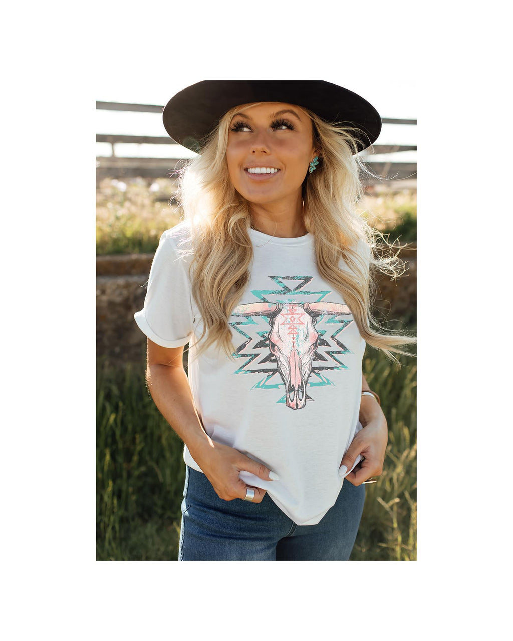 - Stylish and trendy Aztec Steer Skull Graphic Casual T Shirt for women