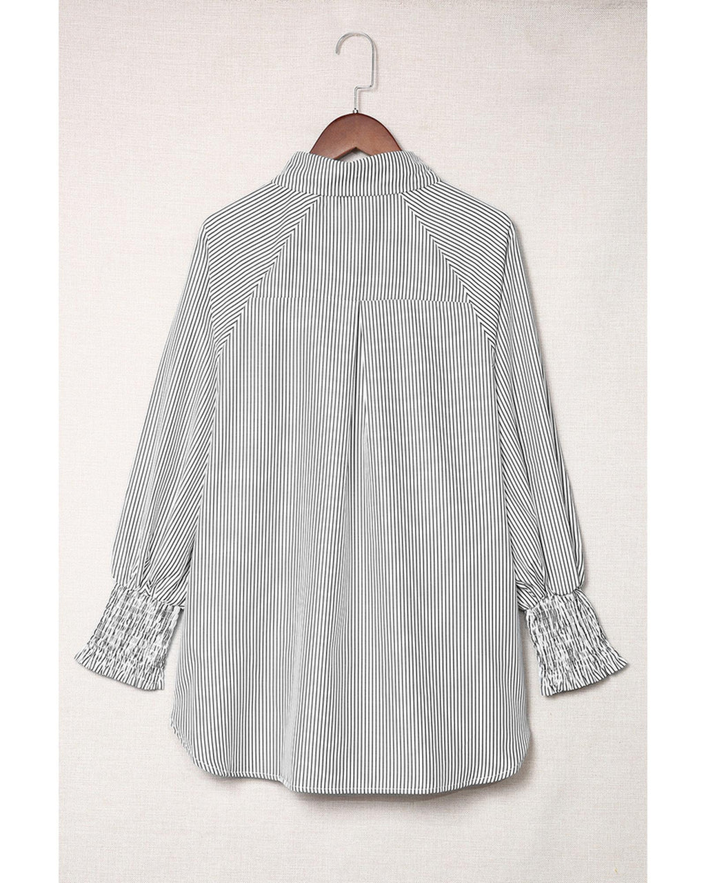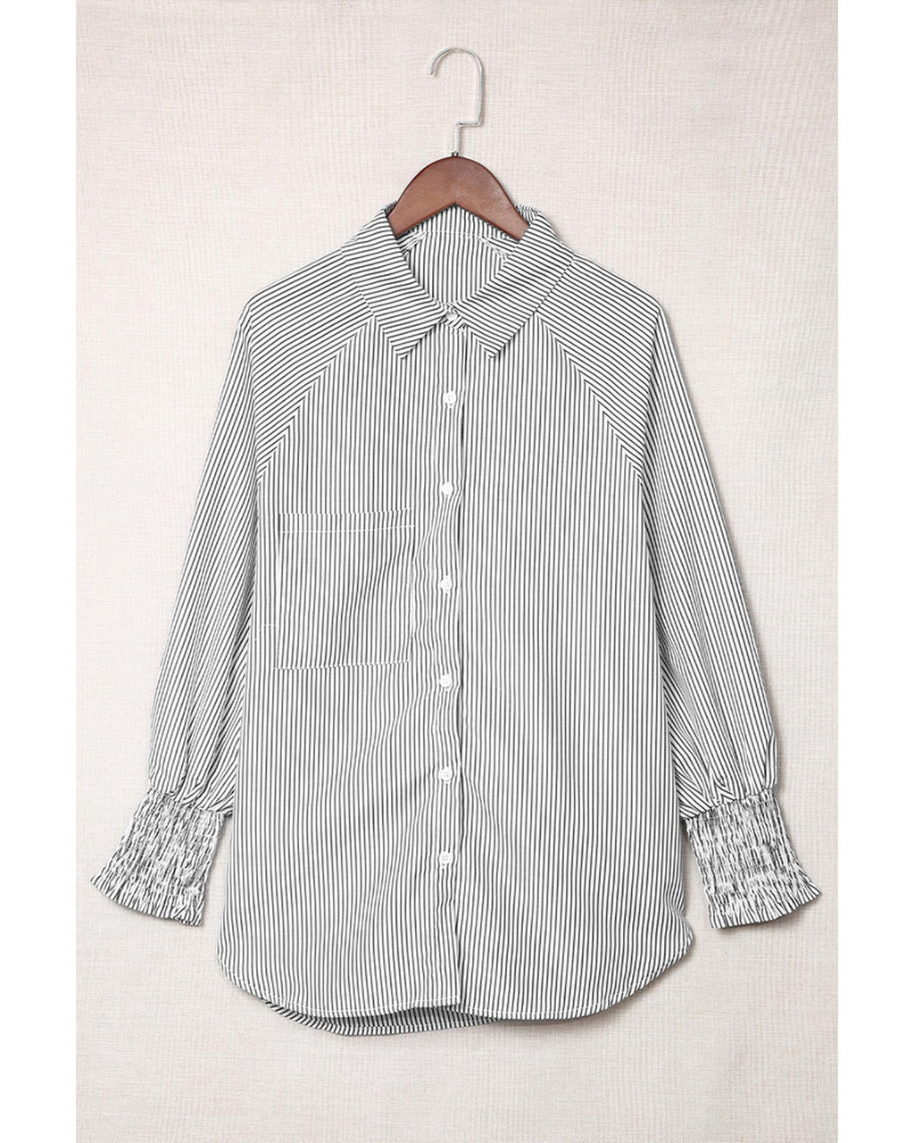 Azura Exchange Striped Boyfriend Shirt with Smocked Cuffs and Pocket - S