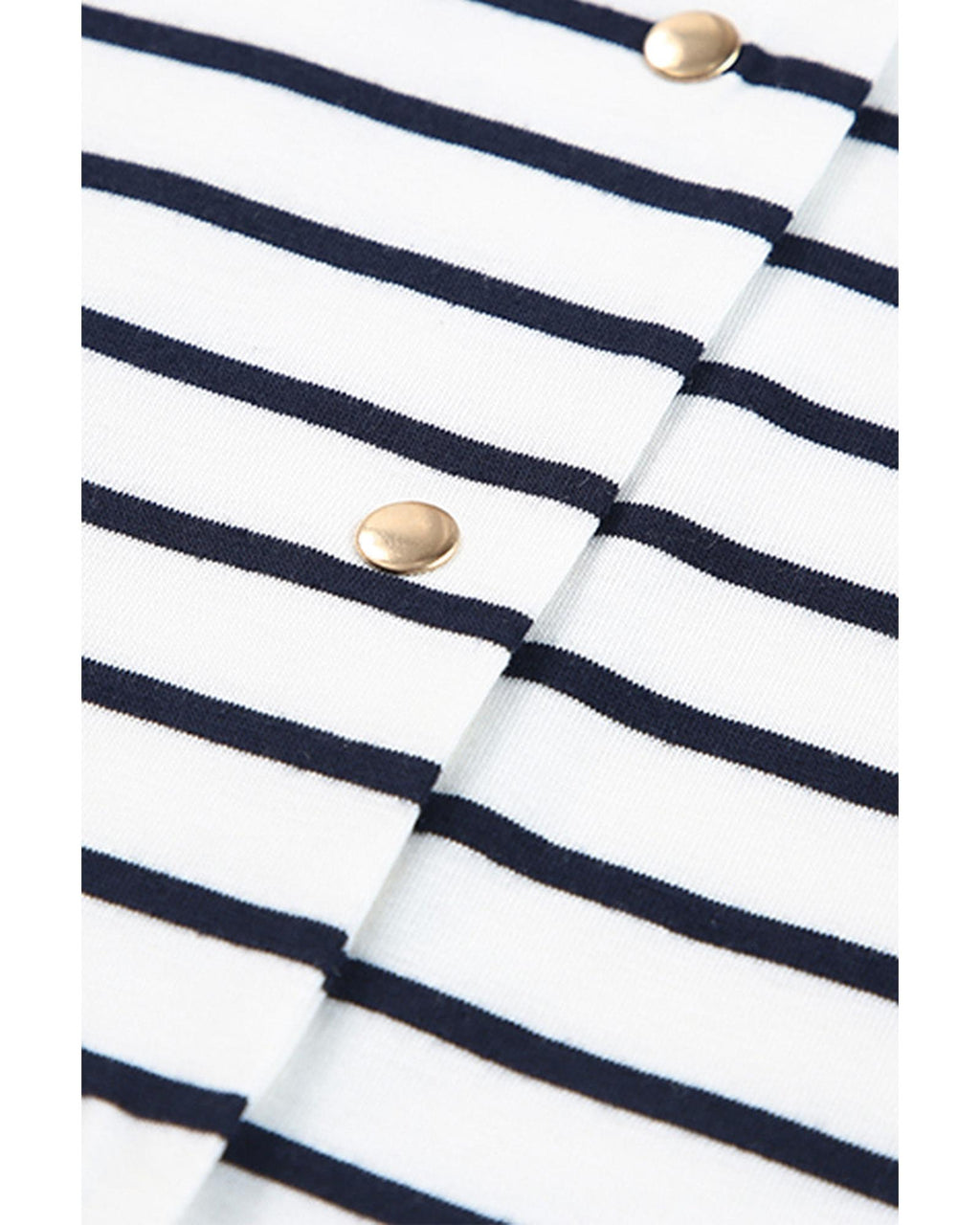 - Striped Print Ruffled Buttoned Long Sleeve Top