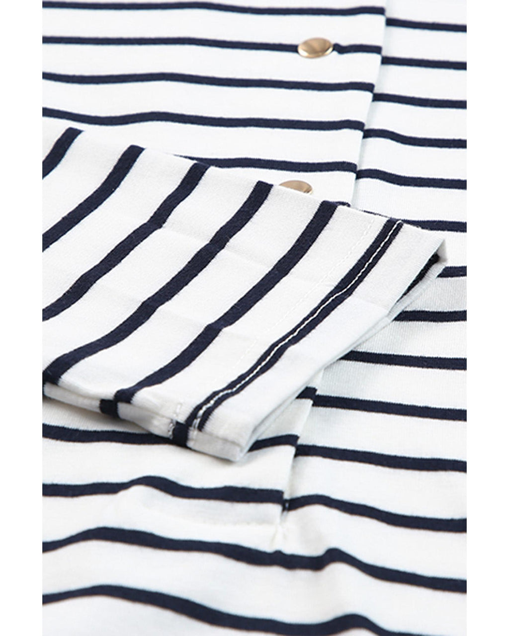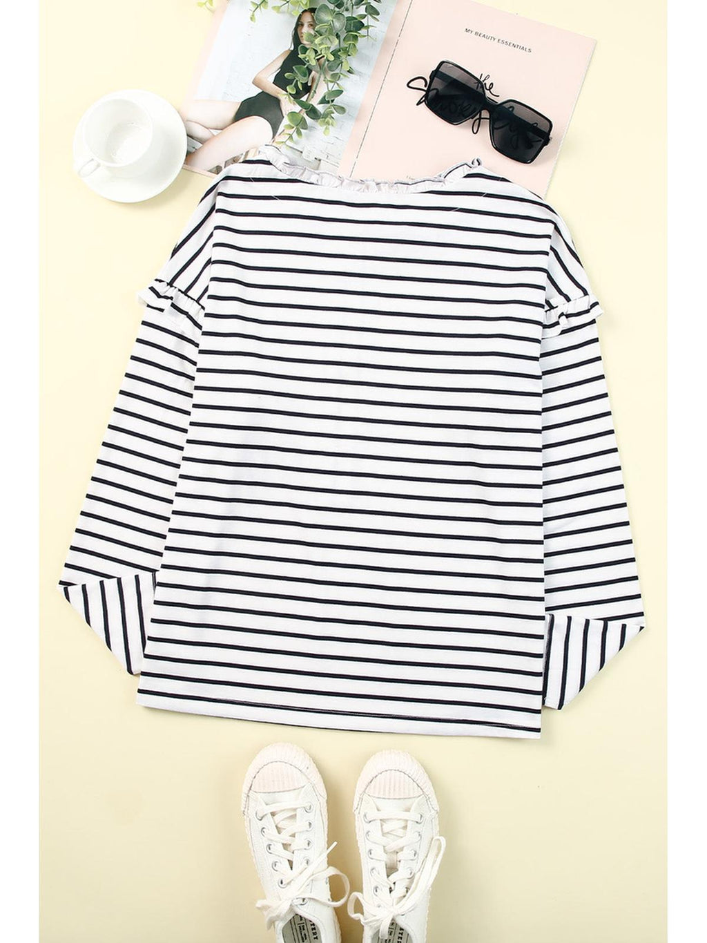 • Striped Print Ruffled Buttoned Long Sleeve Top