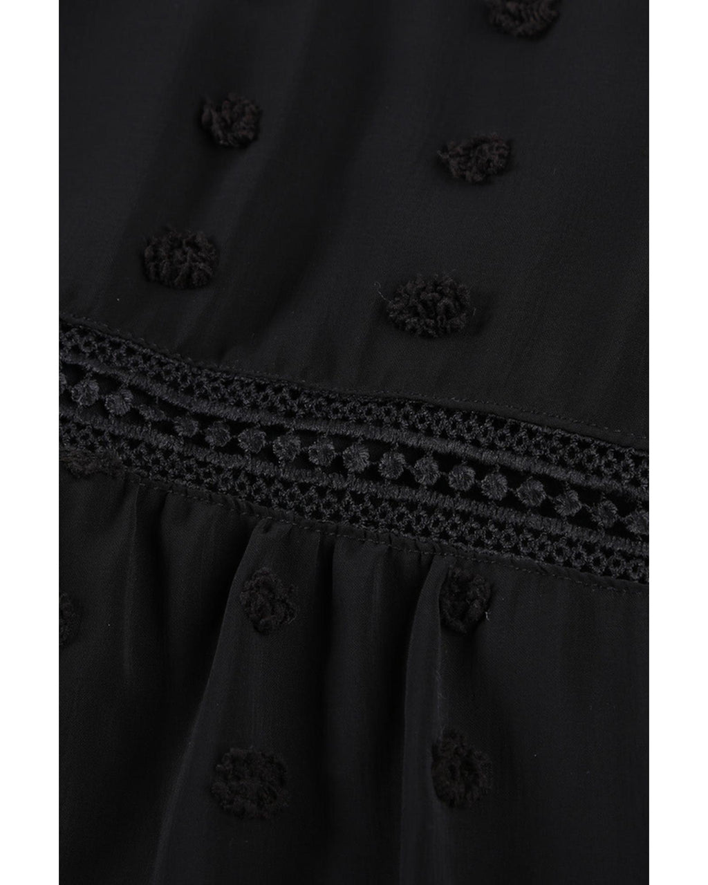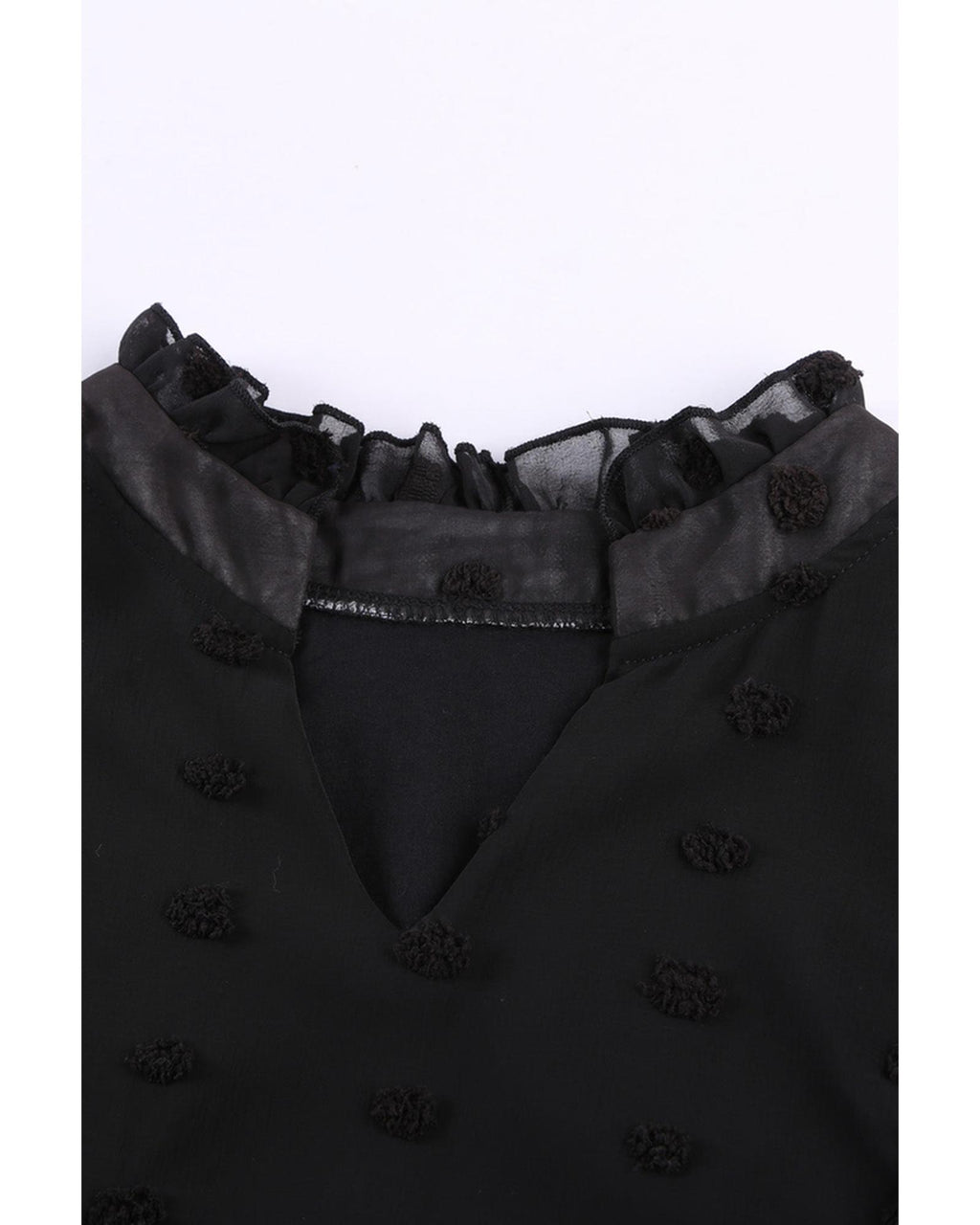 • Swiss Dot Split Neck Ruffle Babydoll Blouse