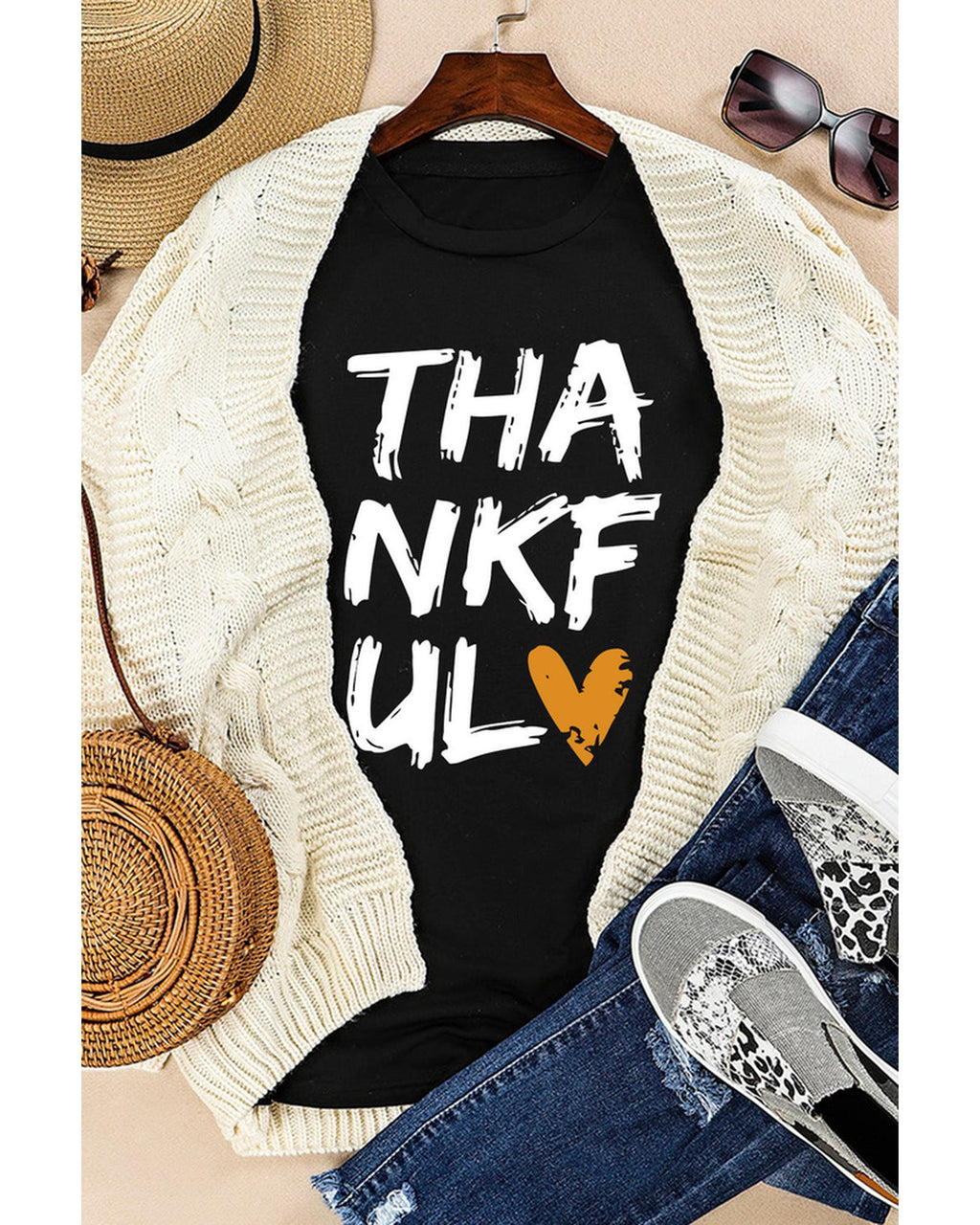 - Stylish and comfortable THANKFUL Heart Print Short Sleeve Graphic T-Shirt