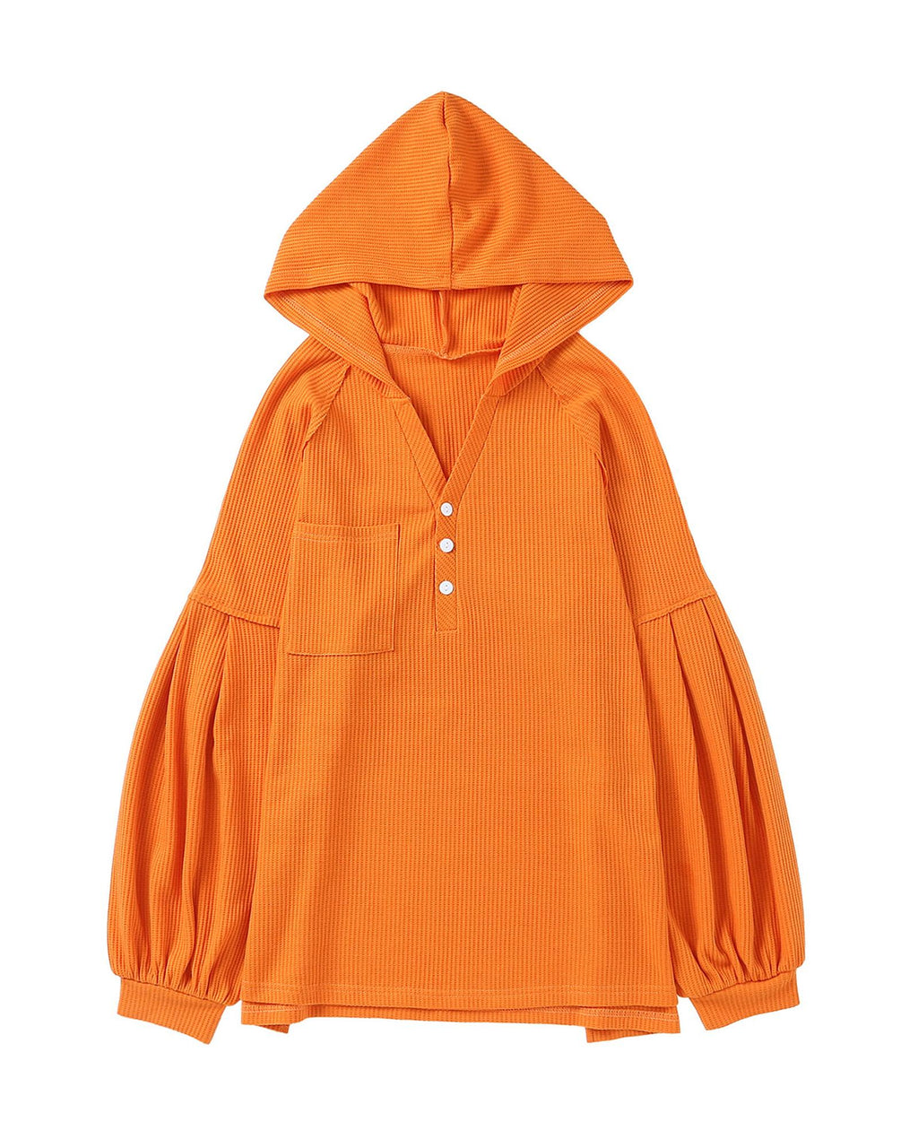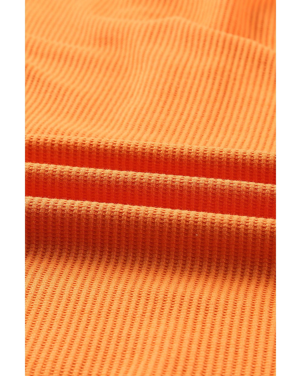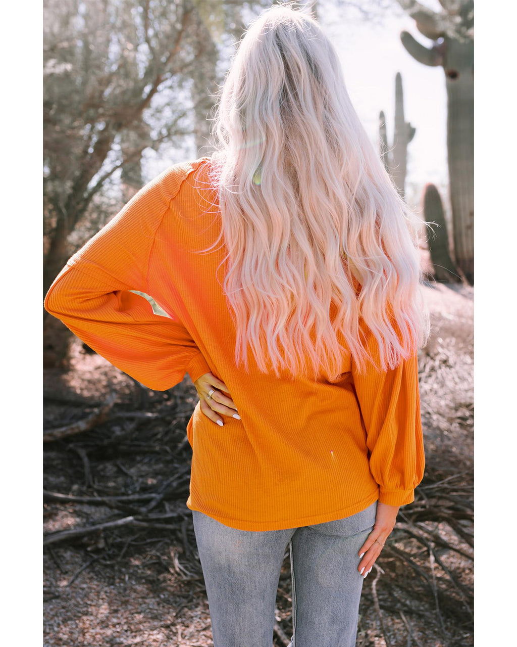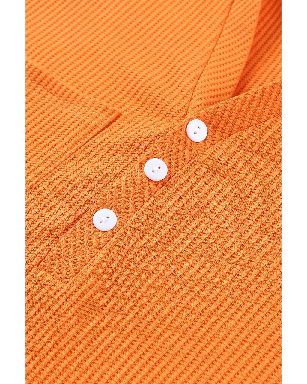 - Buttoned V Neck Drop Shoulder Waffle Knit Top