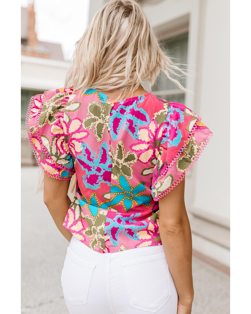Azura Exchange Vibrant Floral Print Ruffle Sleeve Blouse - L