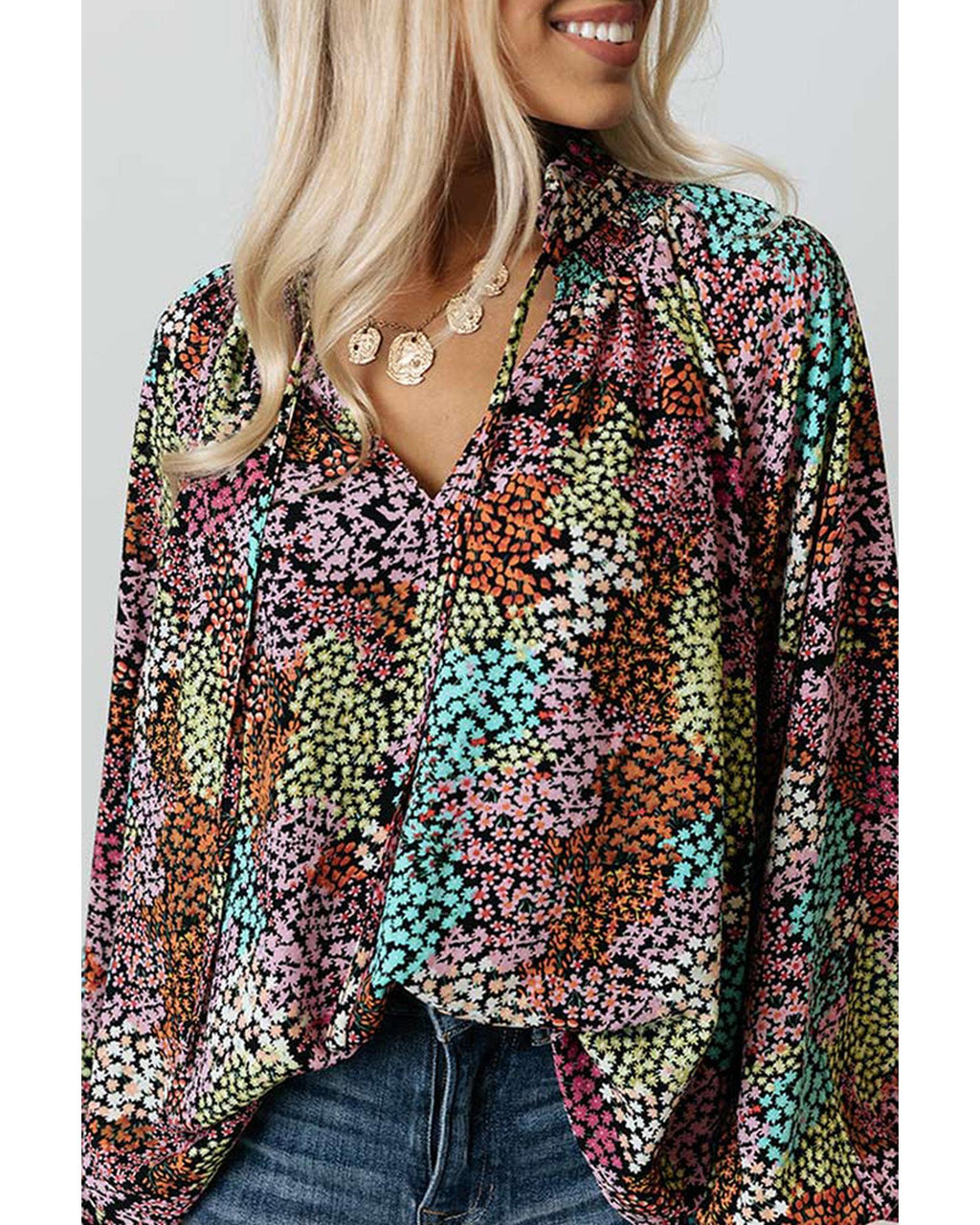 • Vibrant and stylish Multicolor Floral Tie V Neck Puff Sleeve Blouse
