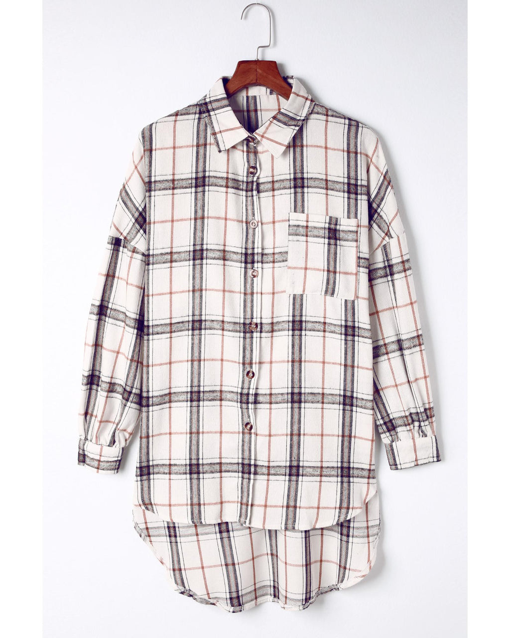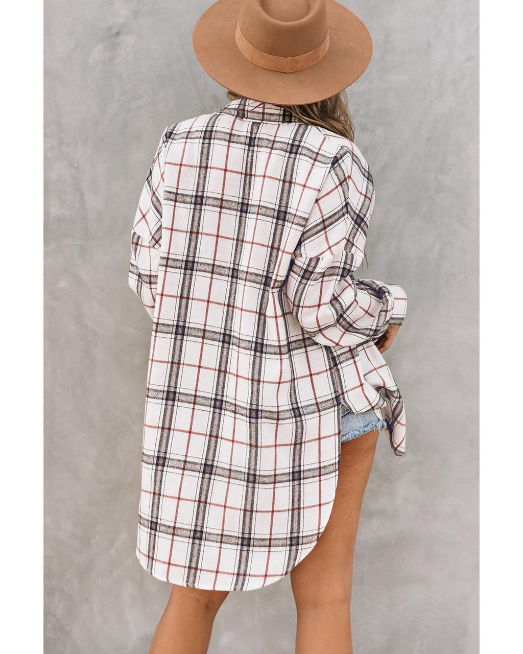 • White oversized plaid pattern shacket