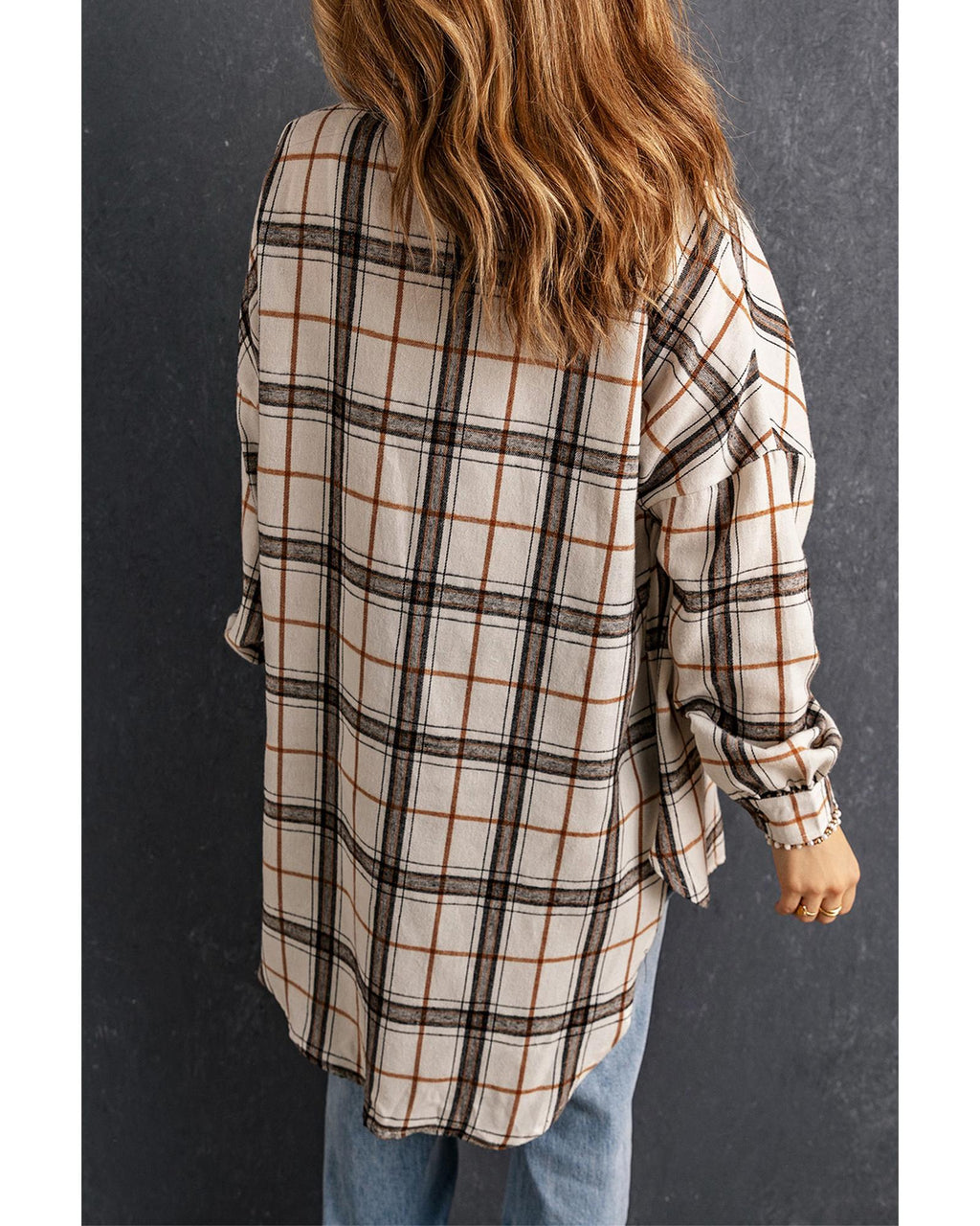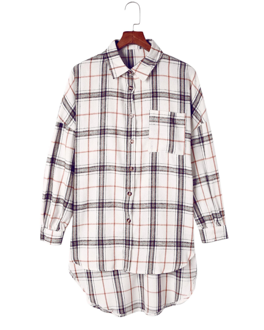 • White oversized plaid pattern shacket