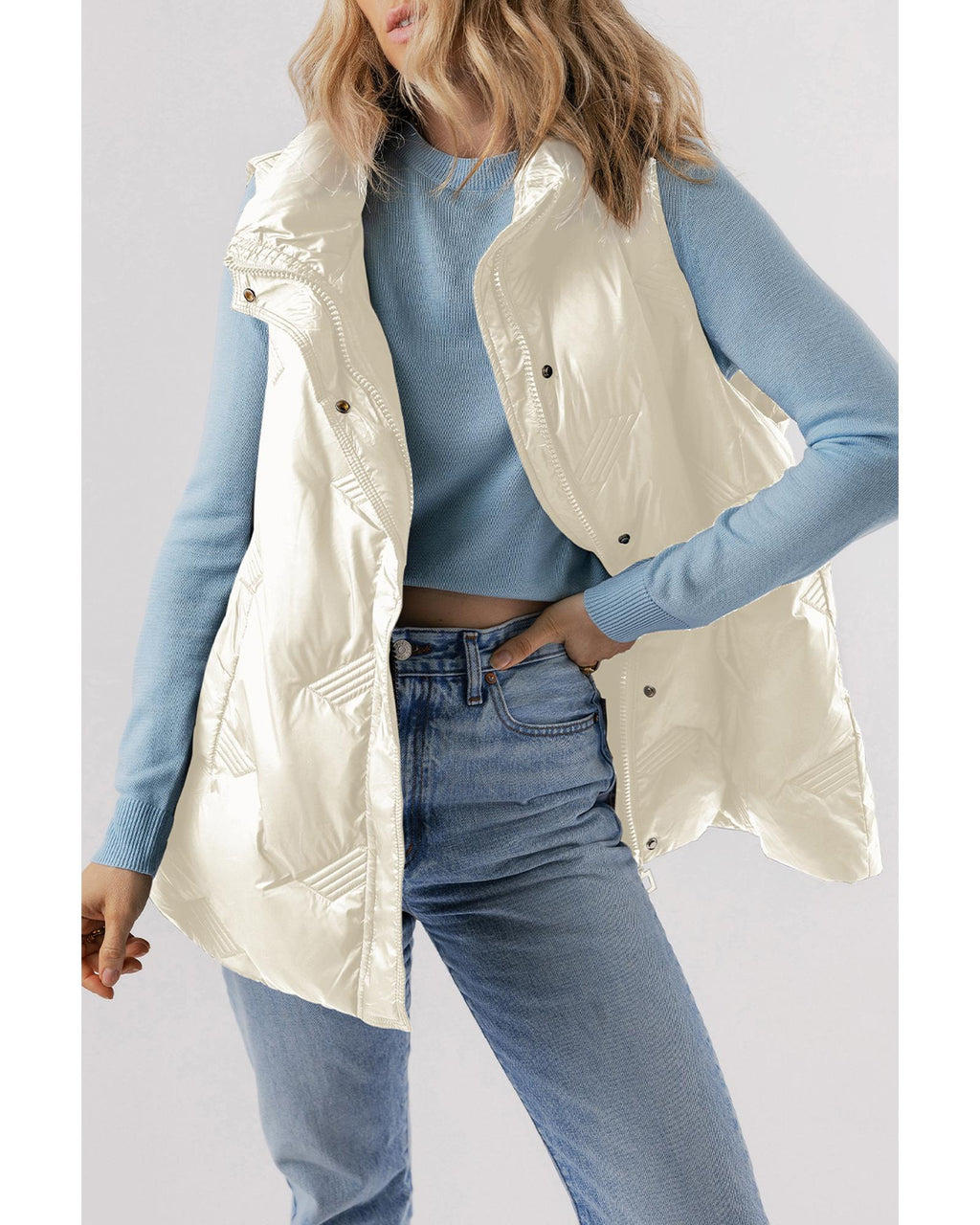 Azura Exchange White Quilted High Neck Zip Up Jacket Vest - XL