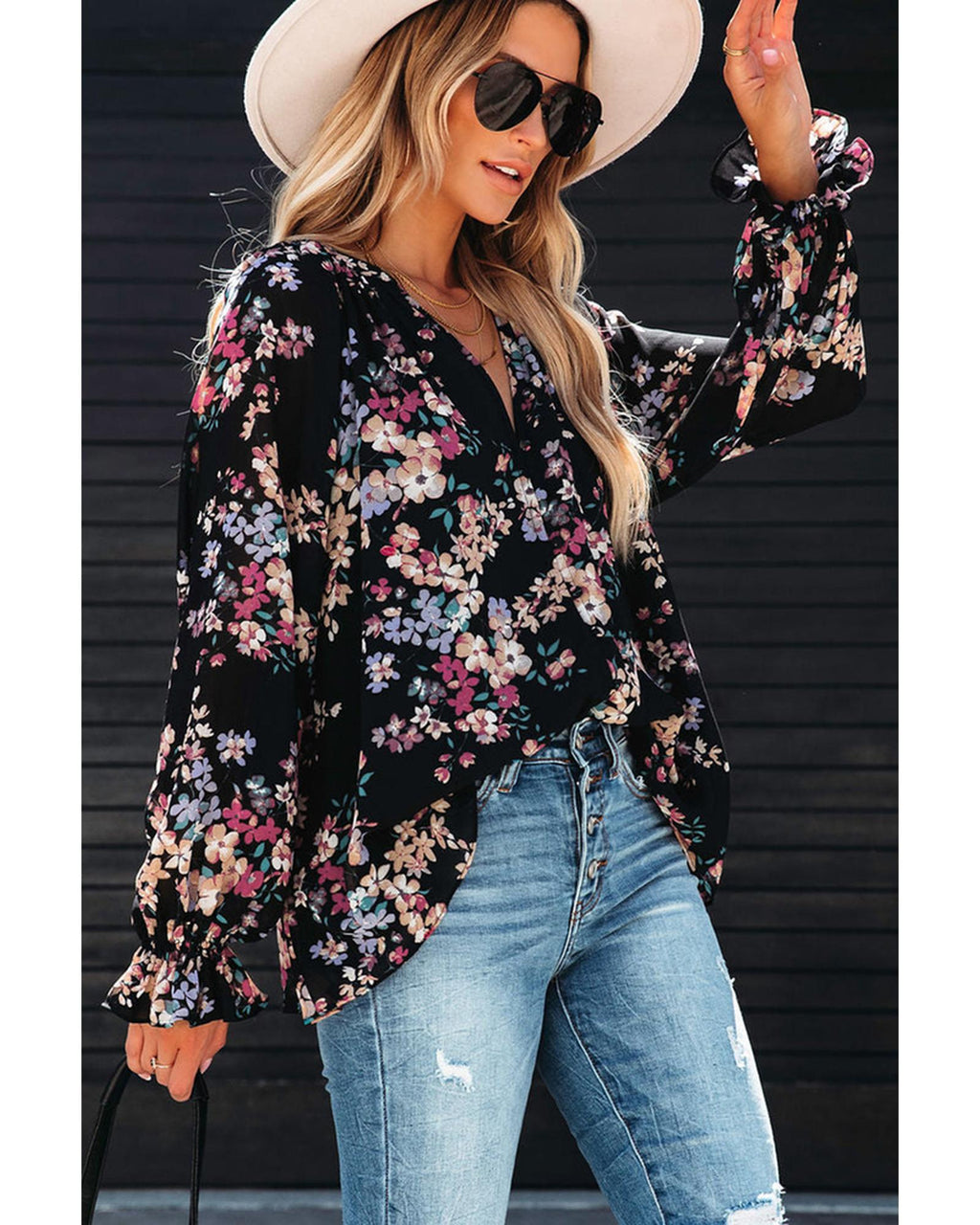 Azura Exchange Wildflower Print Chiffon Blouse - L