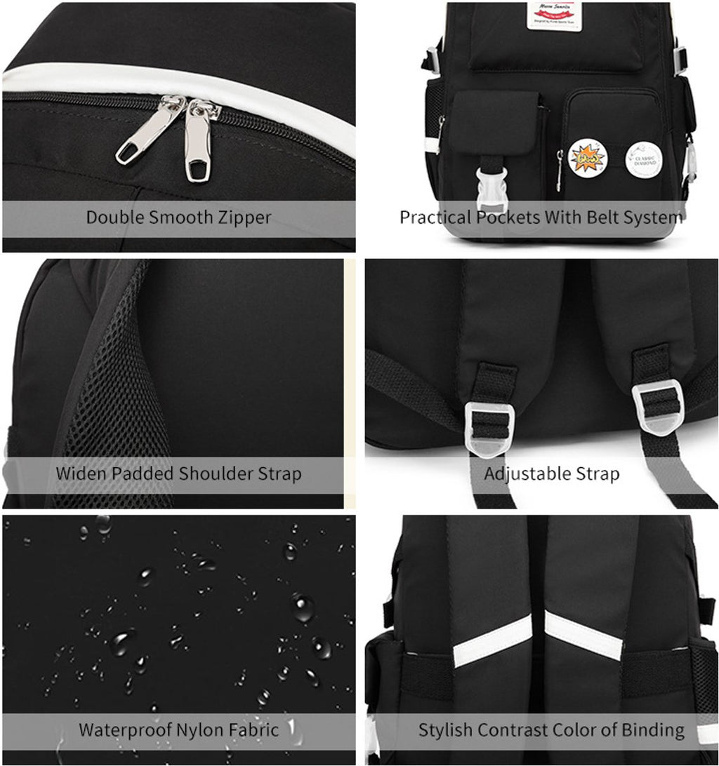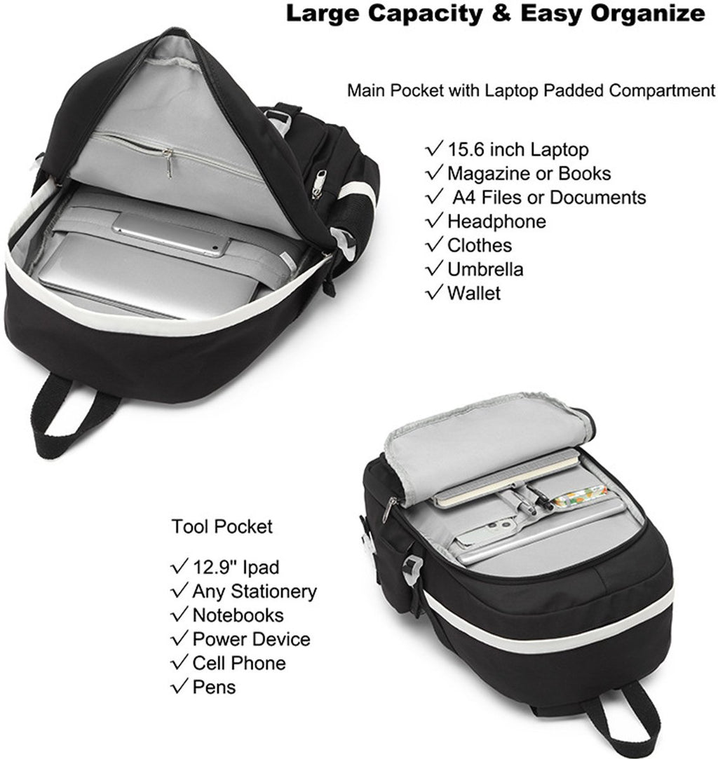 【Large Size School Backpacks】: The laptop backpack measures 37 x 18 x 47cm (L*W*H). School backpack with padded compartment, suitable for 15.6" and 16" laptops. 【Girls School Bag Material】: The high school student backpack is made of water-resistant, lightweight and thickened polyester. The girls backpacks with the excellent workmanship of sturdy stitching, anti-slip shoulder strap buckle and smooth zippers ensure long-term use. 【Multi-Compartment School Bags】: The laptop backpack has 5 separate compartments of different sizes and two side pockets for daily storage. The three front pockets can hold a charger and other small items, convenient for daily organization. The front tool pockets also have multiple compartments for ample space for supplies. 【Travel Backpack for Every Age and Occasion】This teenage girls' backpack is stylish enough for casual use and students, while its design is multifunctional. The girls' school backpack is great for kindergarten, elementary school, middle school, outdoor activities, shopping, and travel.