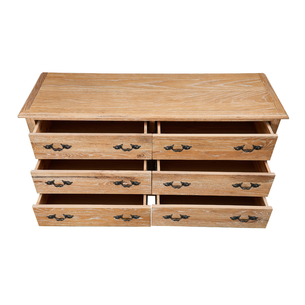 Designed in a French Provincial style, this bedside-dresser-mirror set gives an elegant look to your bedroom. The dresser has 6 spacious drawers and bedside has 2 drawers. The drawers have solid oak fronts and full extension runners. Black metal handles make it look stunning. The set includes the best quality annealed glass mirror. This particular glass provides the mirror with great durability and strength. The set’s structural frame is made of sustainably harvested solid and veneered oak wood. Standing strongly on solid wood cabriole legs, the easy-to-assemble furniture in Whitewash oak goes well with a variety of interior decor styles. It comes with a one-year warranty. The dresser, mirror, and bedside have dimensions of W140 x D45 x H82 CM, W90 x D5 x H112 CM, and W60 x D38 x H60 CM.