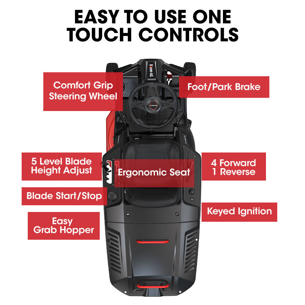 - Easy-to-grab handles on top of grass collection box for easy cleanup