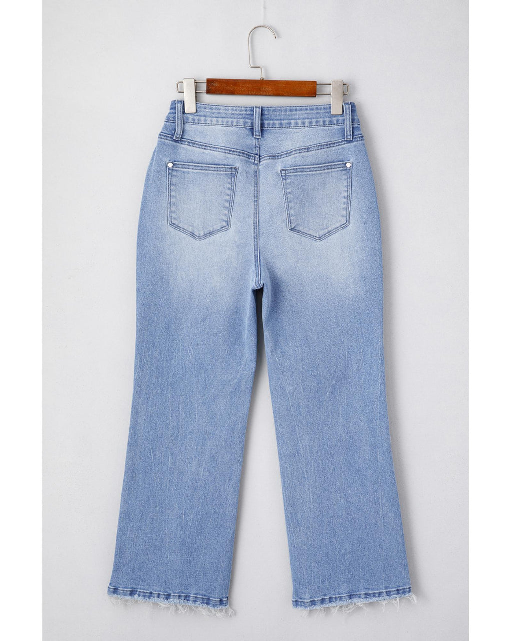 Beau Blue Mineral Wash Raw Hem High Waist Flared Jeans - 4 US