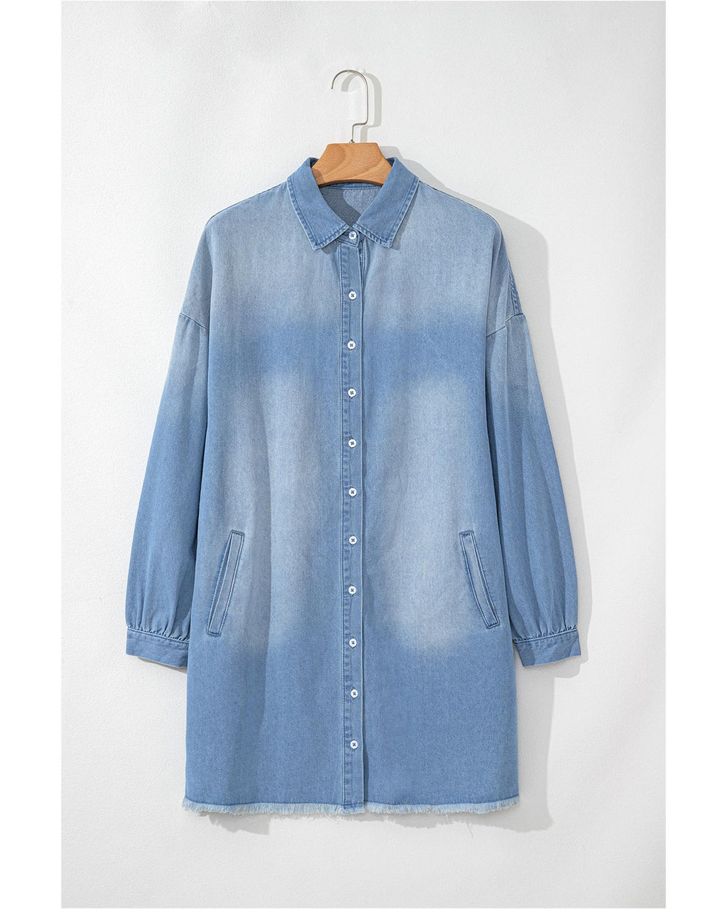 Beau Blue Risen Medium Washed Denim Shirt Dress - XL