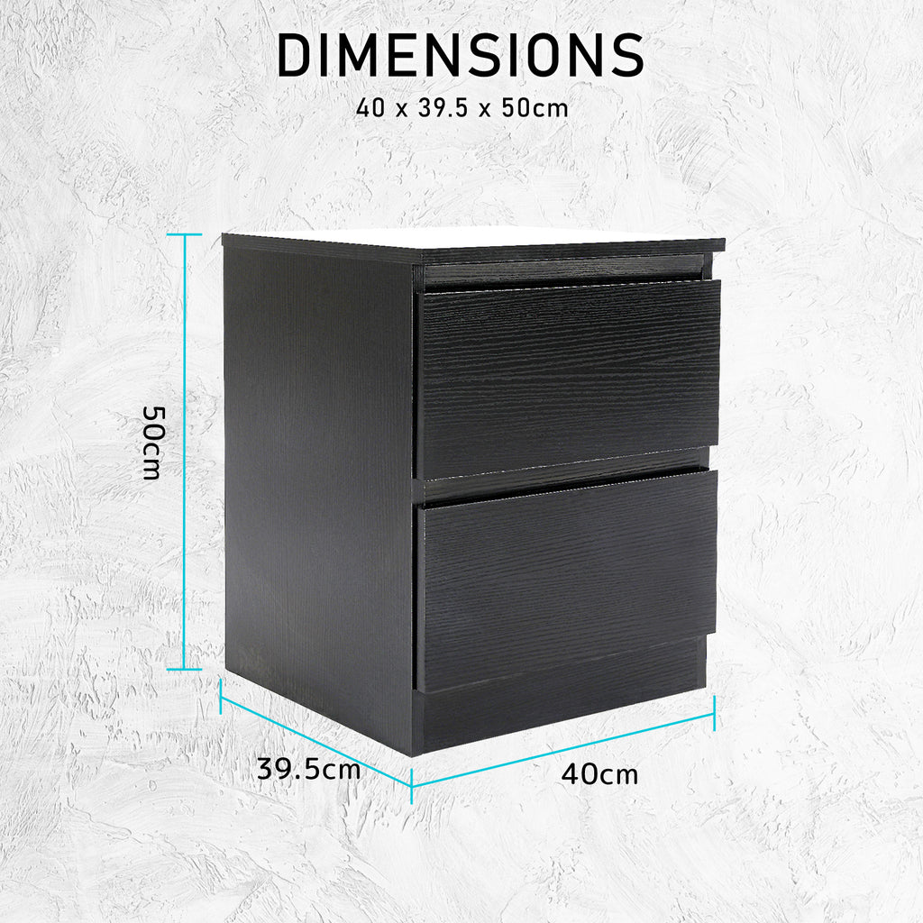 La Bella Bedside Table Side Storage Cabinet Nightstand Bedroom 2 Drawer JOSS - Black