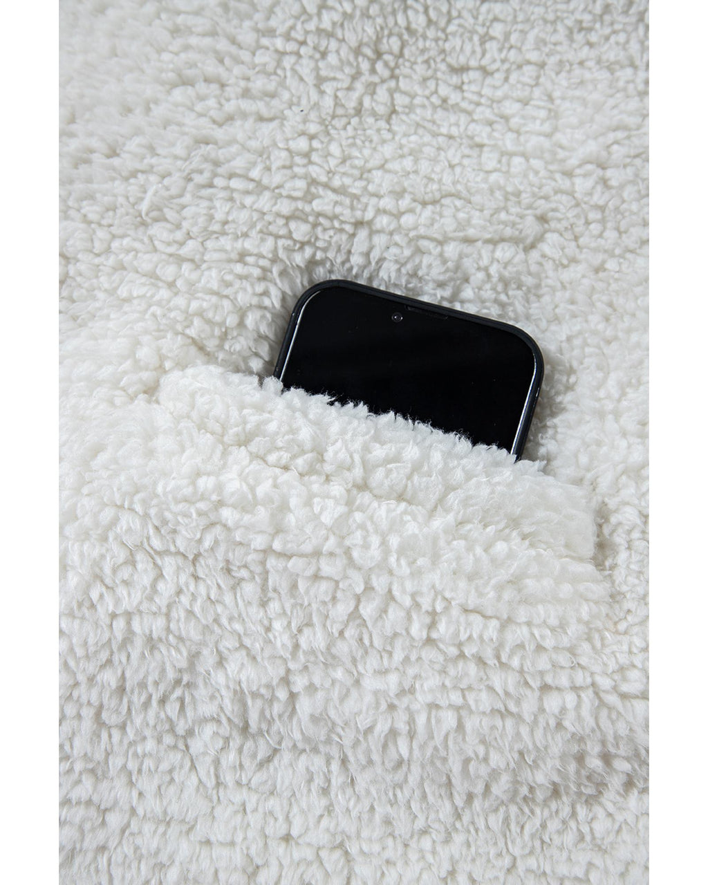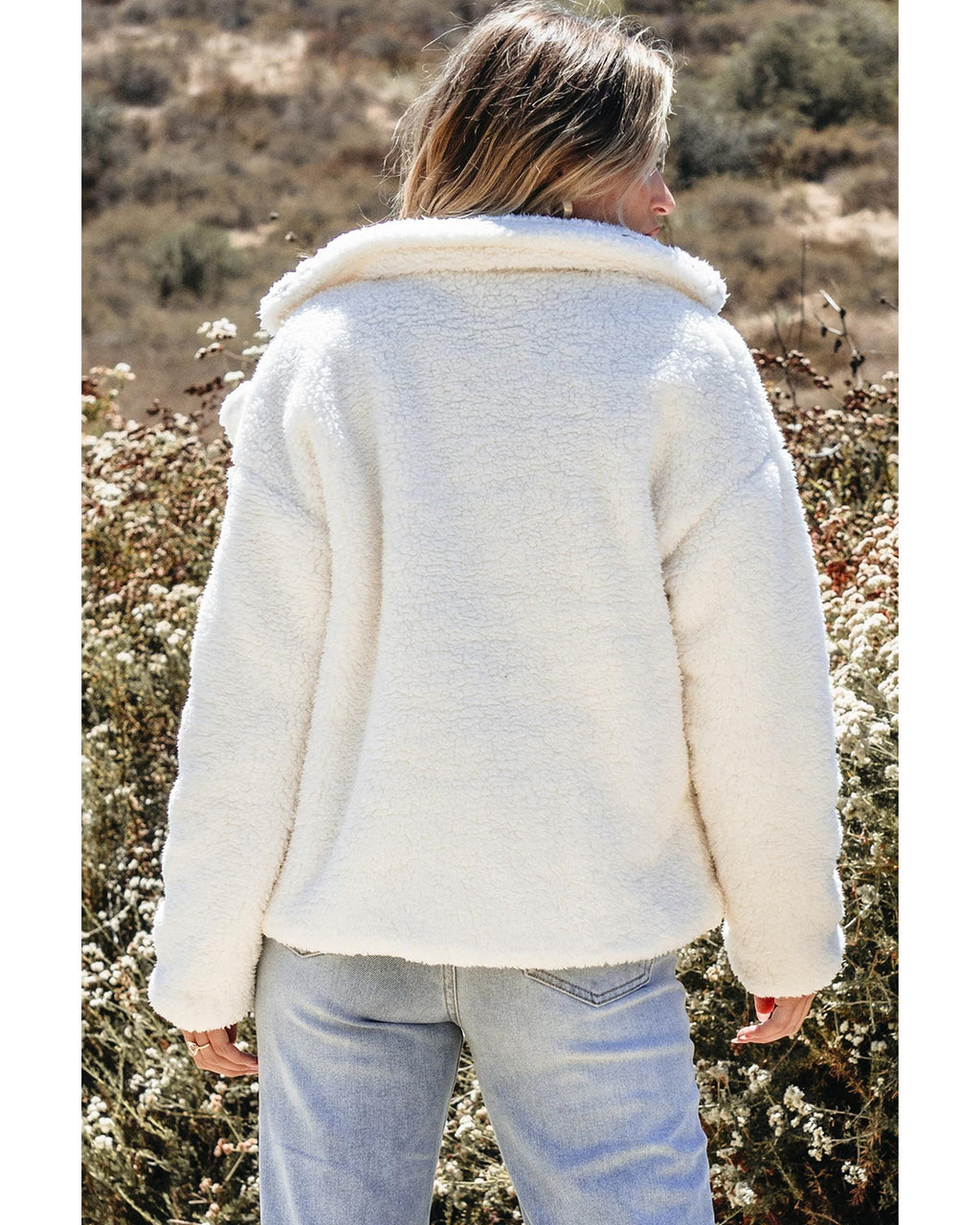 Beige Faux Fur Button Pocketed Lapel Collar Jacket - M