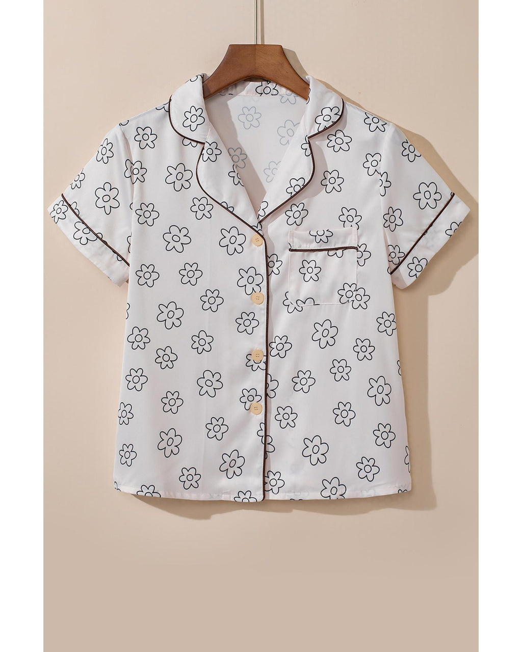 Beige Floret Printed Pajama Shorts Set - XL