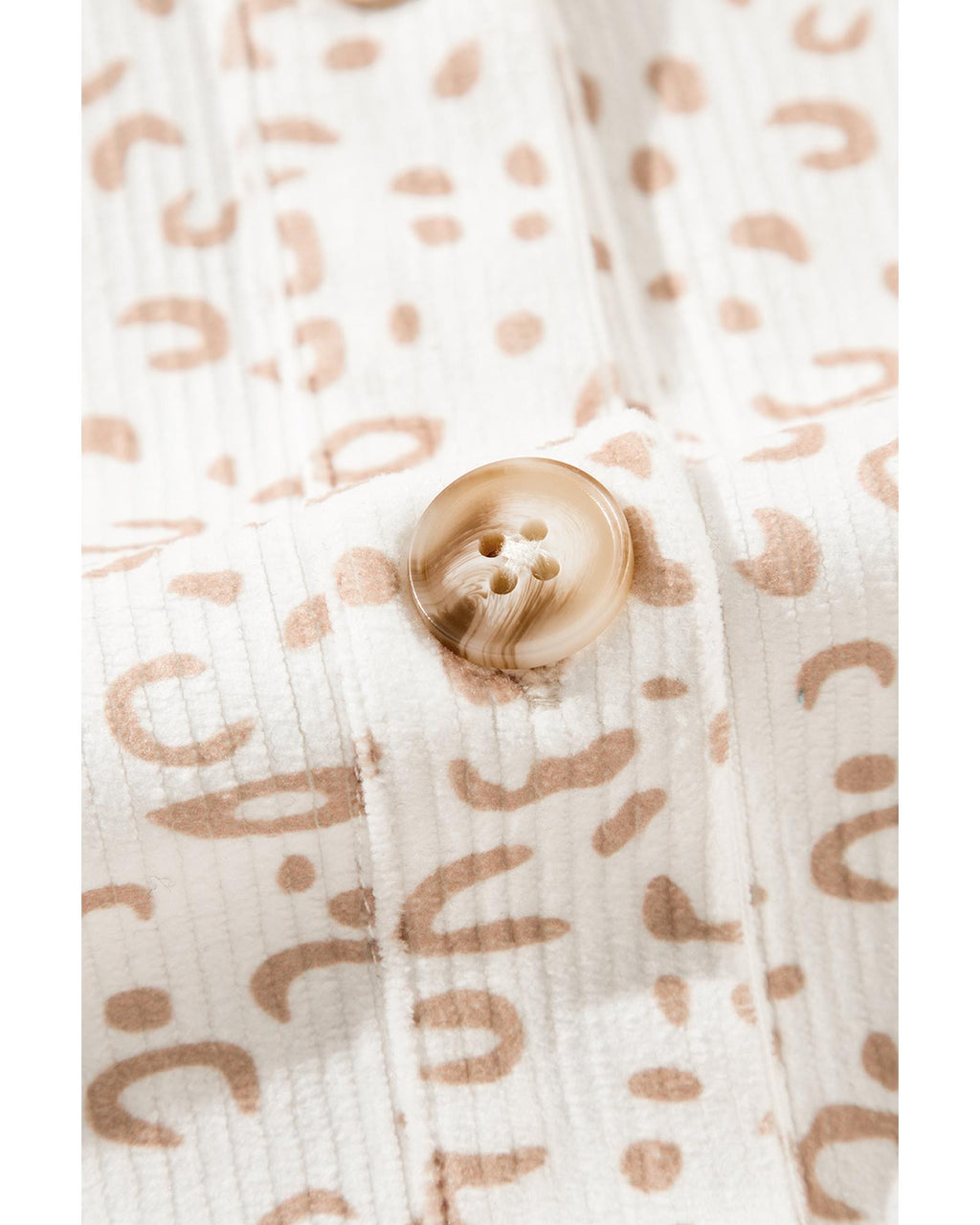 • Beige Leopard Print Flap Pockets Buttoned Corduroy Shacket