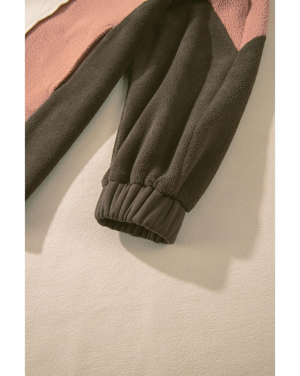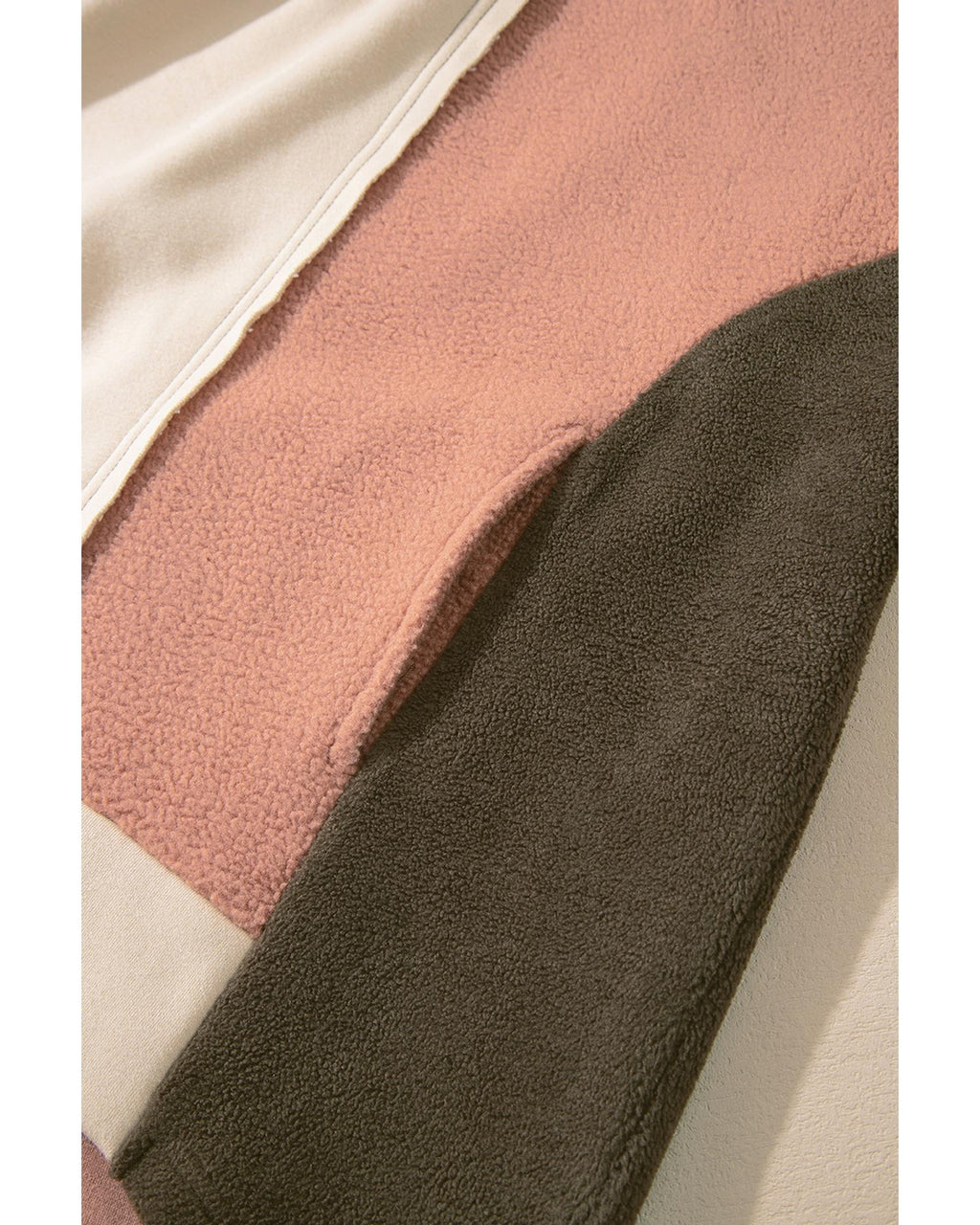 • Beige Oversized Color Block Patchwork High Low Hoodie