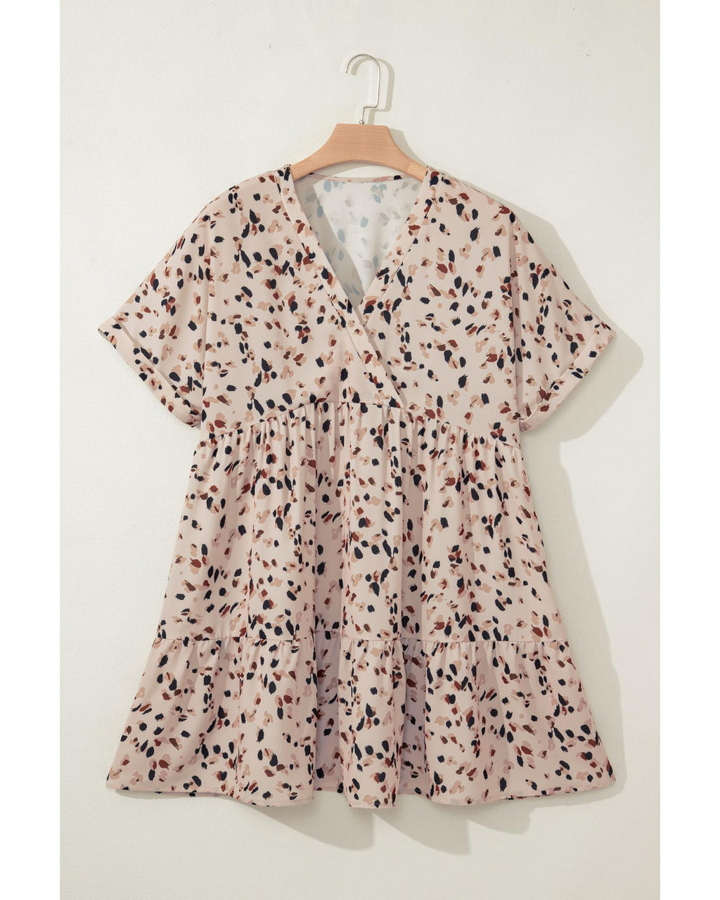 Beige Printed Surplice V Neck Cuffed Sleeve Empire Waist Plus Size Dress - 3X