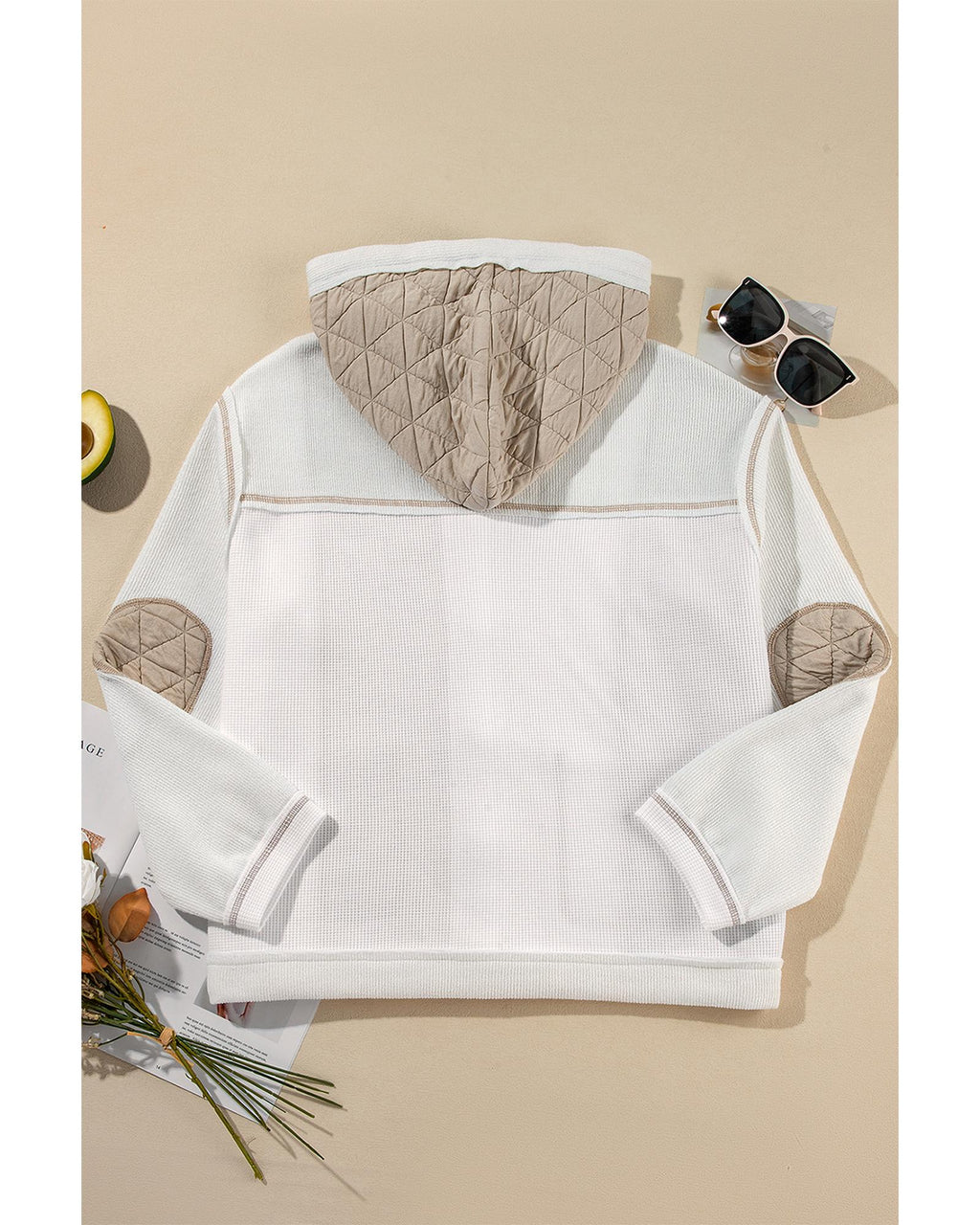 Beige Quilted Textured Patchwork Loose Fit Hooded Jacket - M