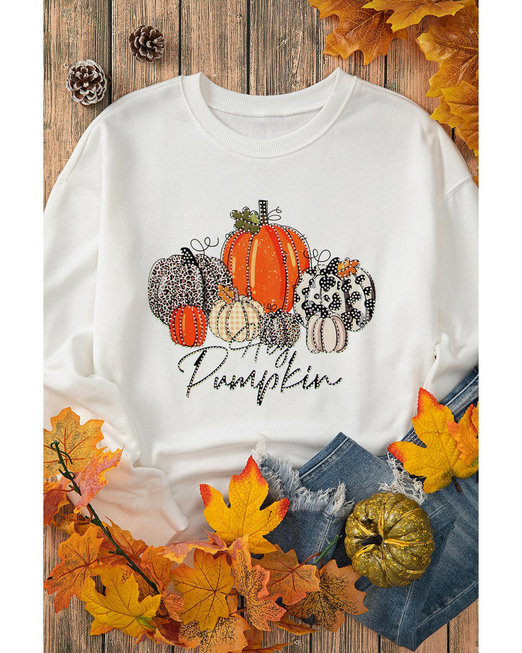 Beige Rhinestone Pumpkin Graphic Crewneck Thanksgiving Sweatshirt - M