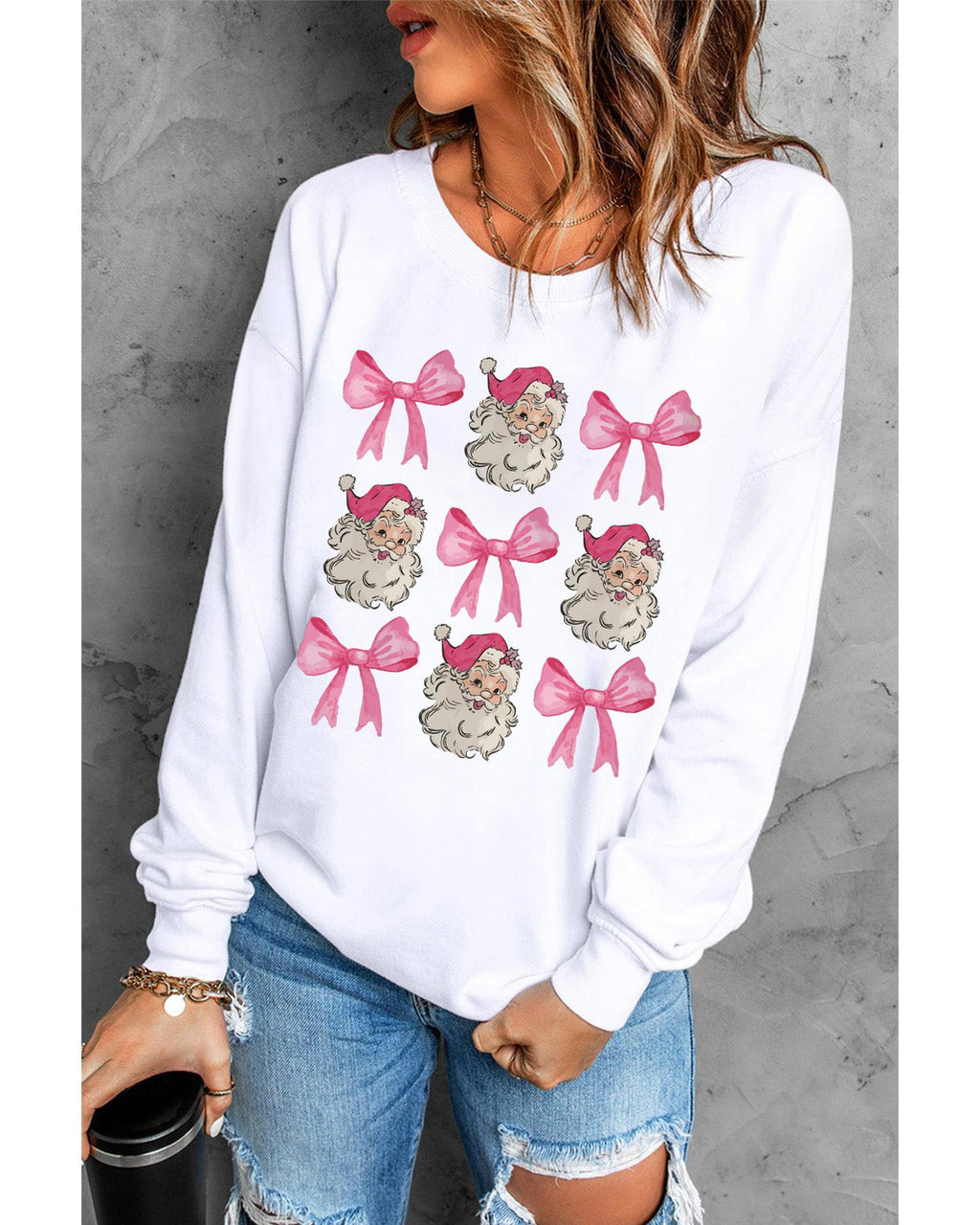 • Beige Santa Claus Bowknot Pattern Christmas Sweatshirt
