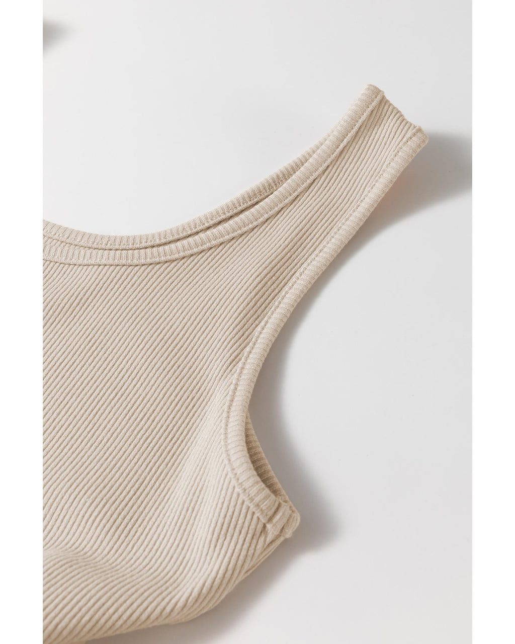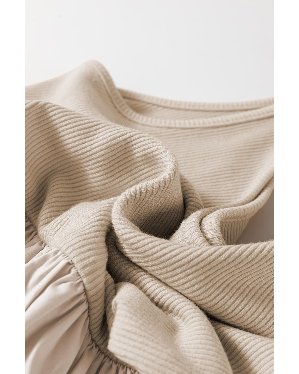 Beige Scoop Neck Ribbed Bodice Pleated Sleeveless Long Dress - M
