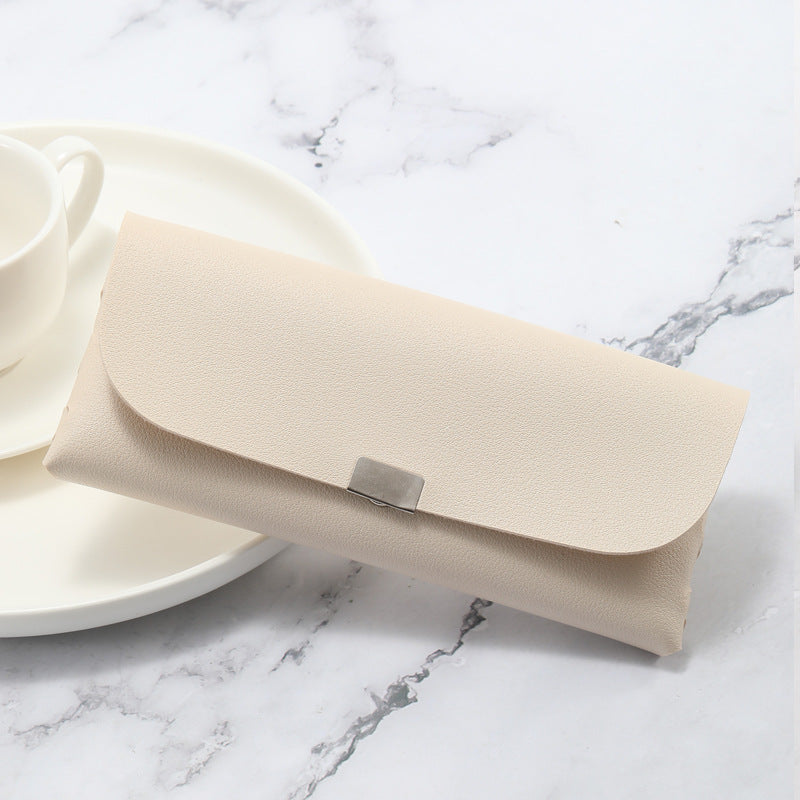 Beige Sleek PU Leather Eyeglass Pouch Set (3-Pack) - Slim Protective Case for Sunglasses