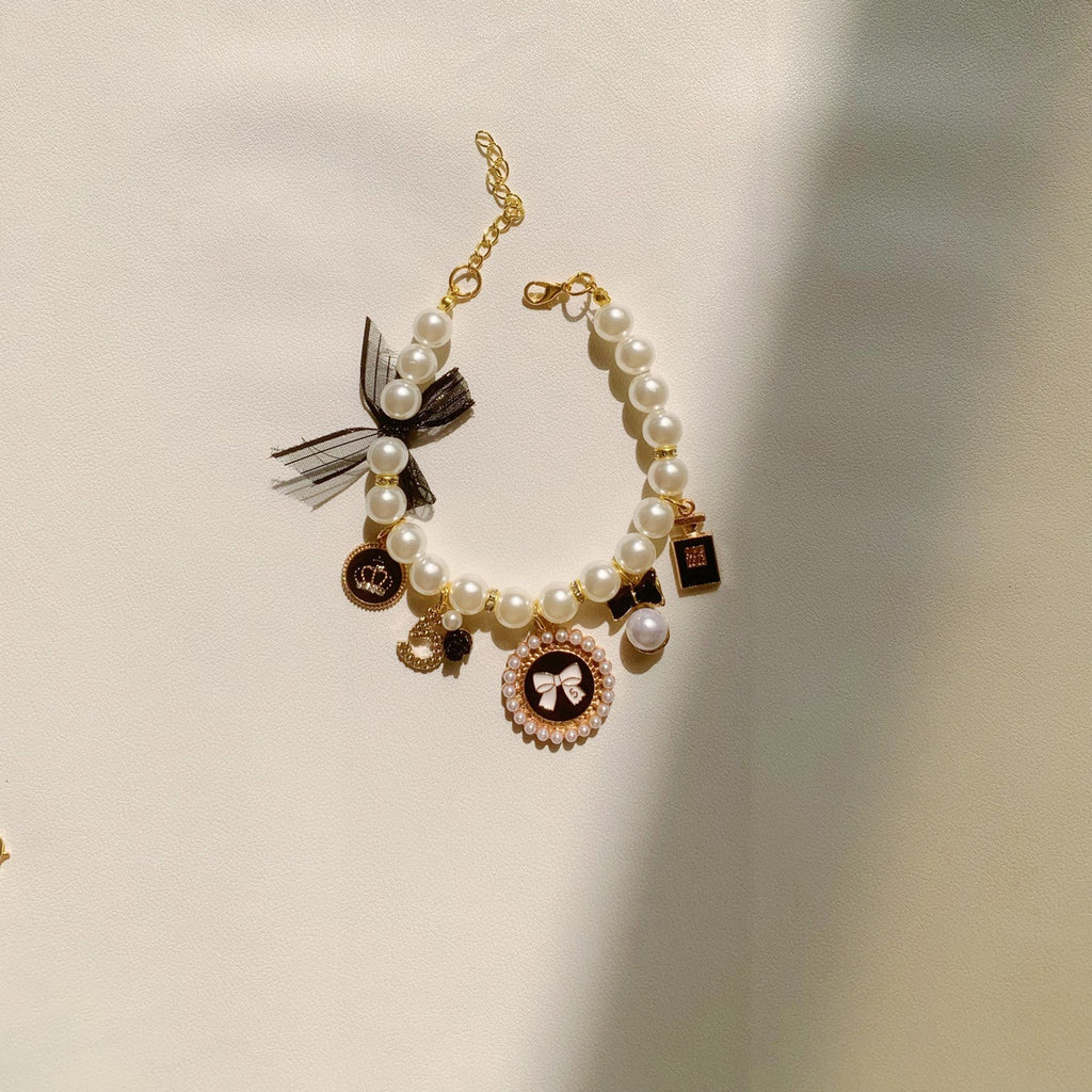 Black 4-PCS Pearl Charm Pet Necklace - Adjustable Bowknot Collar for Small Dogs & Cats (L: 30+5CM)