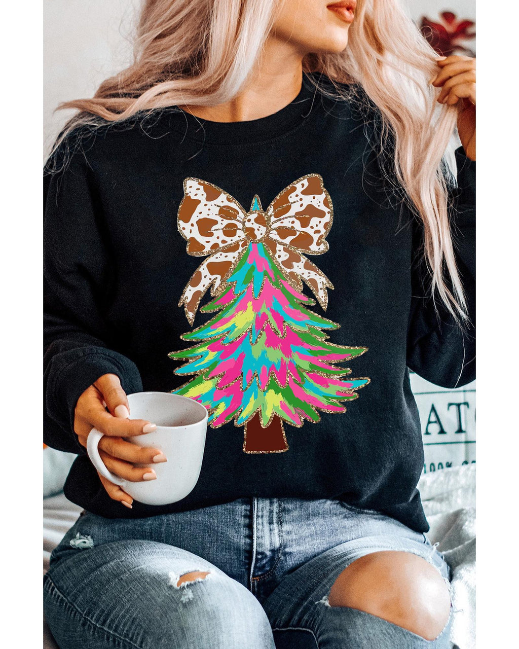 Black Bowknot Christmas Tree Shiny Graphic Sweatshirt - L