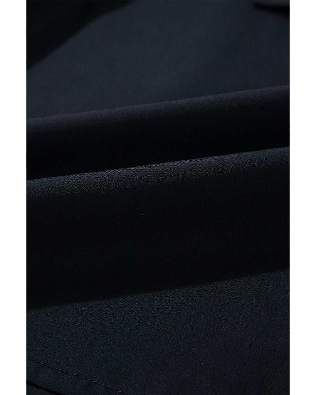 Black Button Up Tie Waist Puff Sleeve Mini Dress - XL