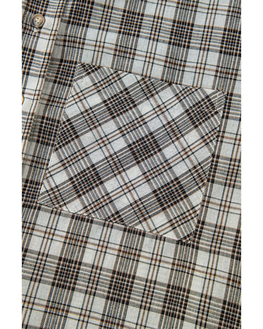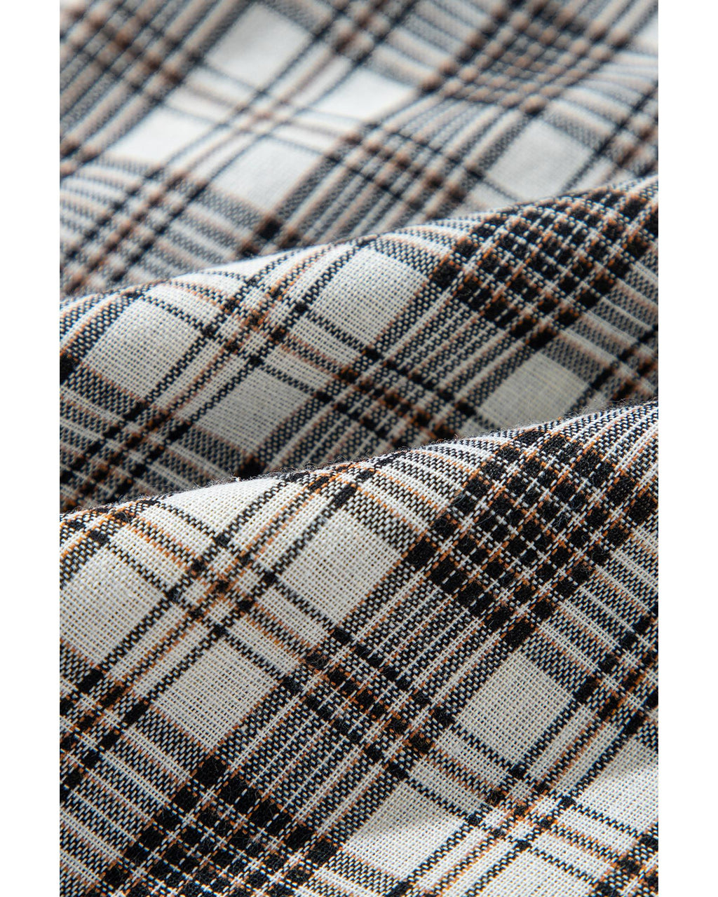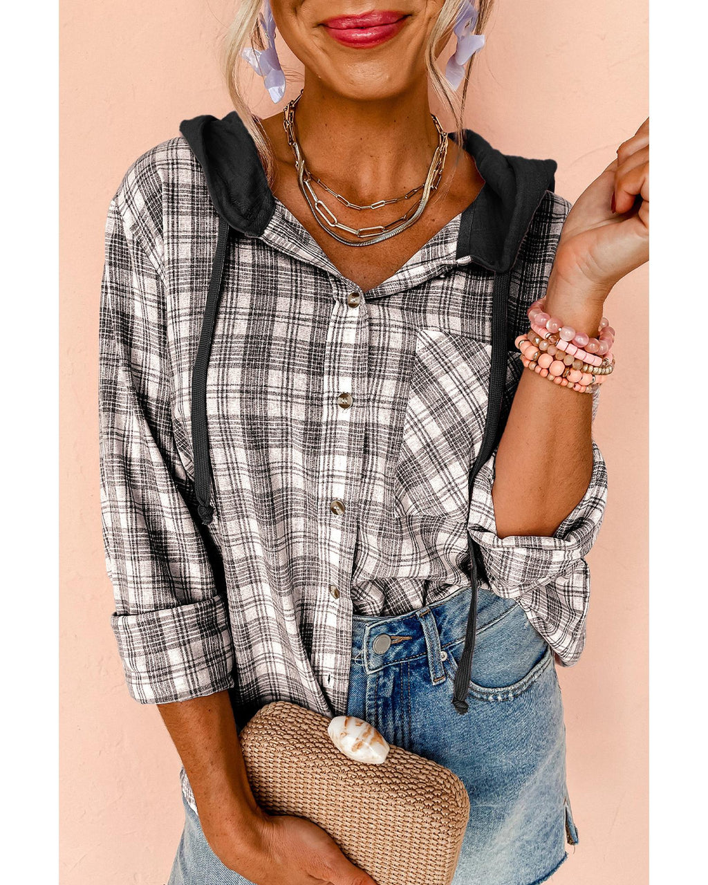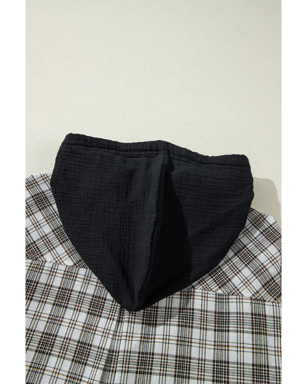 Black Checkered Print Loose Fit Buttoned Hooded Shacket - L