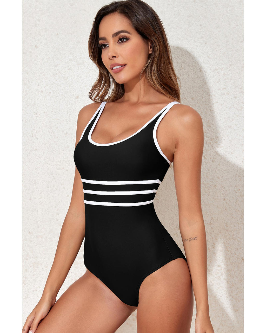 • Black Contrast Trim Colorblock U Neck One Piece Swimwear