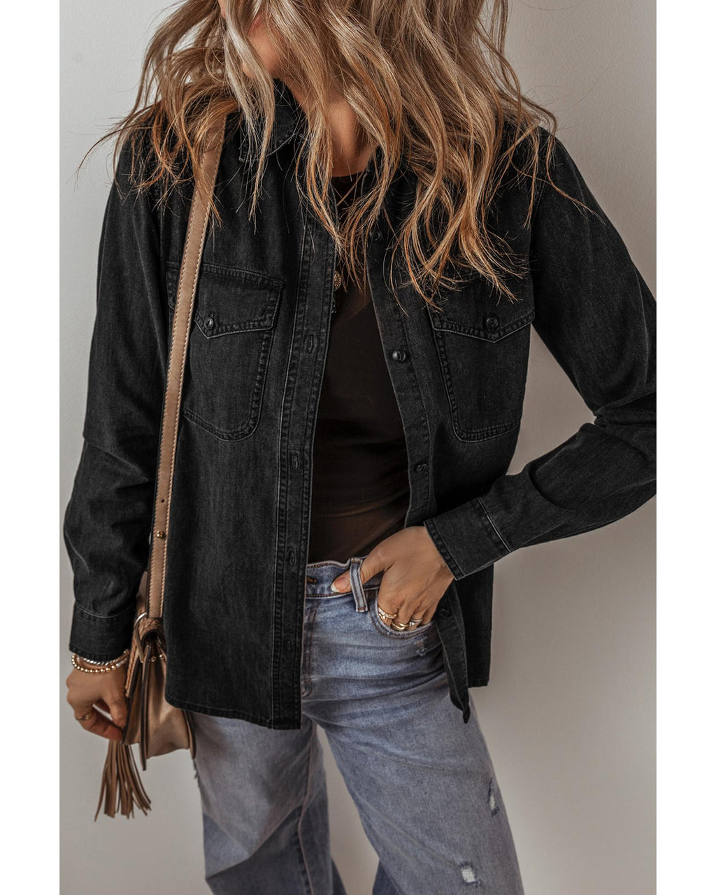 Black Flap Pocket Buttons Collared Jean Jacket - XL