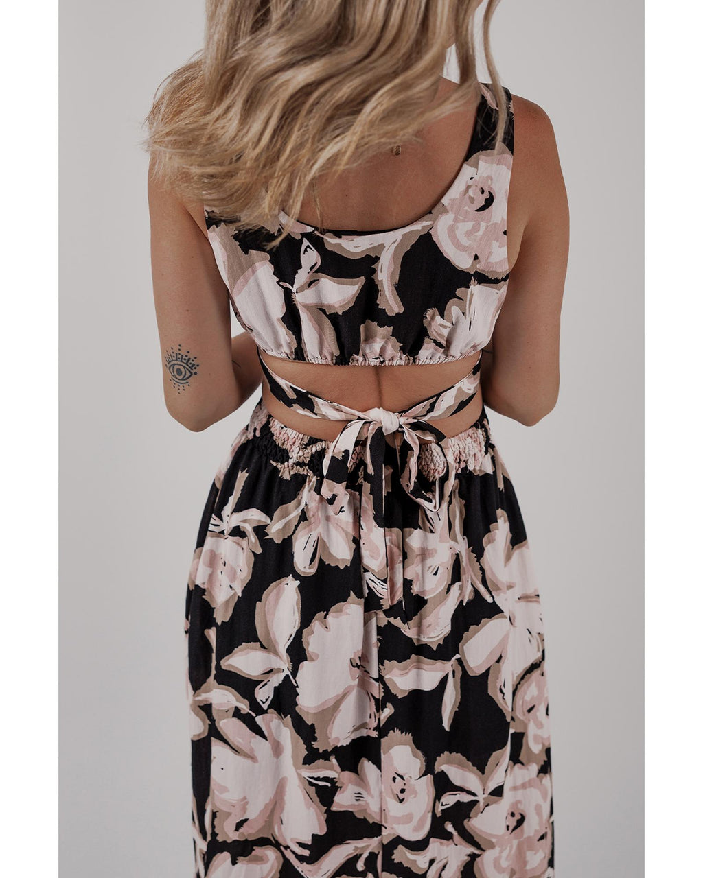 Black Floral Cutout Square Neck Knot Back Sleeveless Maxi Dress - XL