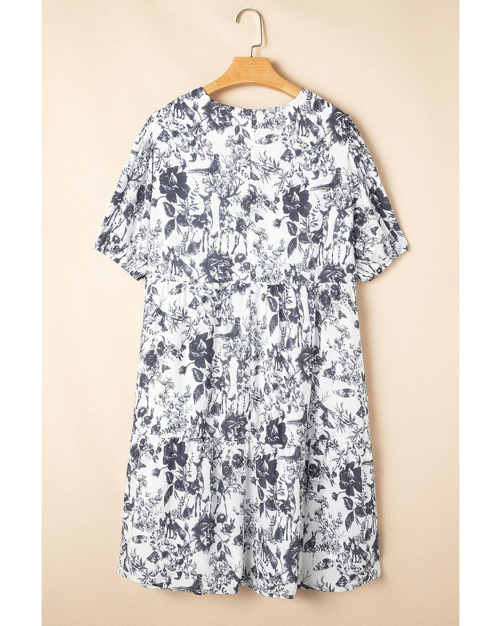 Black Floral Print Bow Detail Puff Sleeve Plus Size Midi Dress - 4X