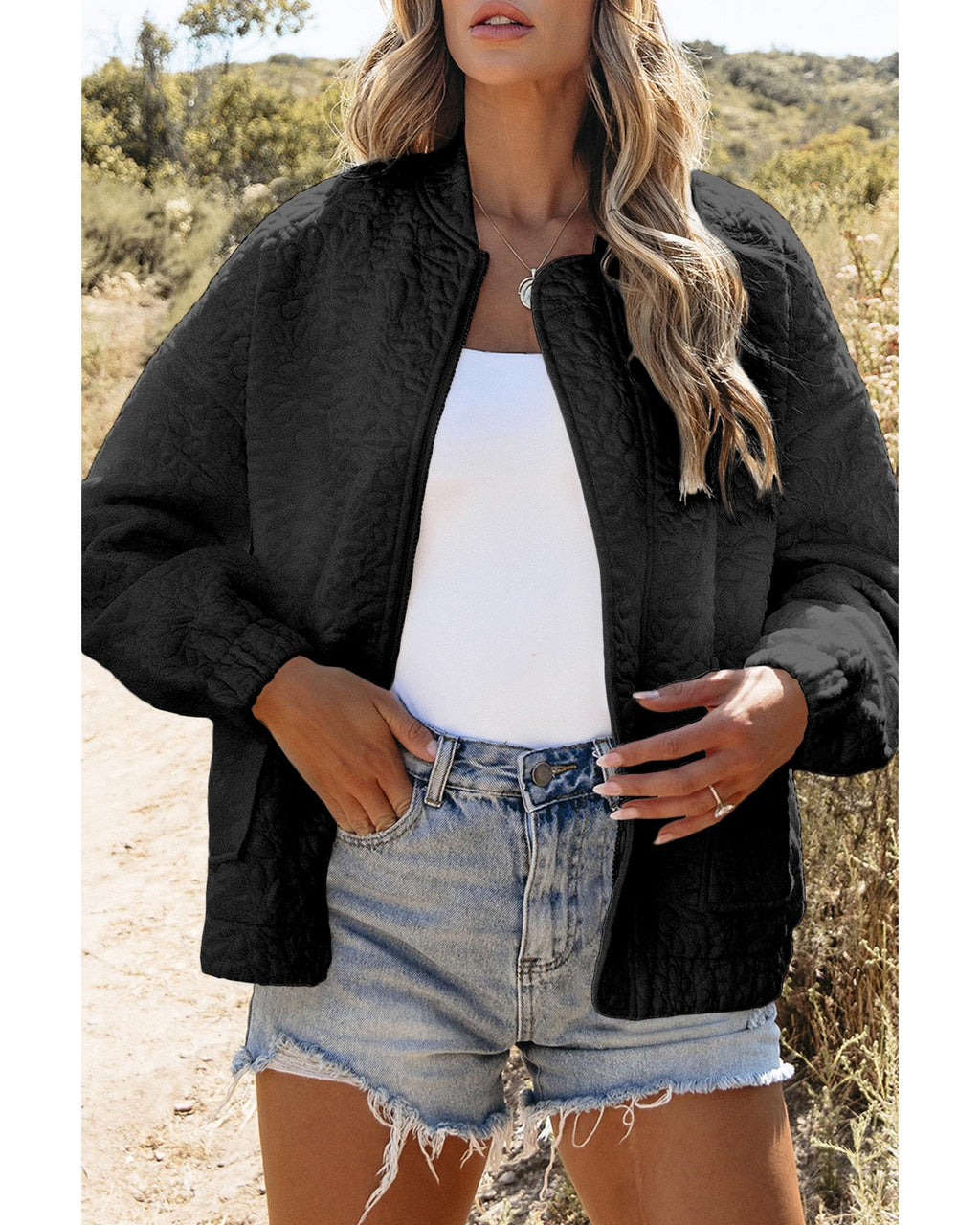 • Black floral quilted jacket