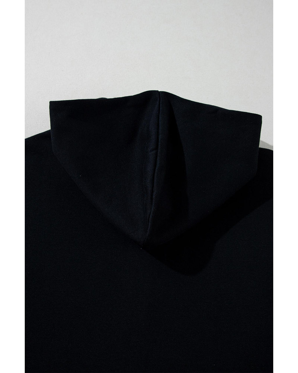Black Half Zipper Kangaroo Pocket Short Sleeve Hoodie - S