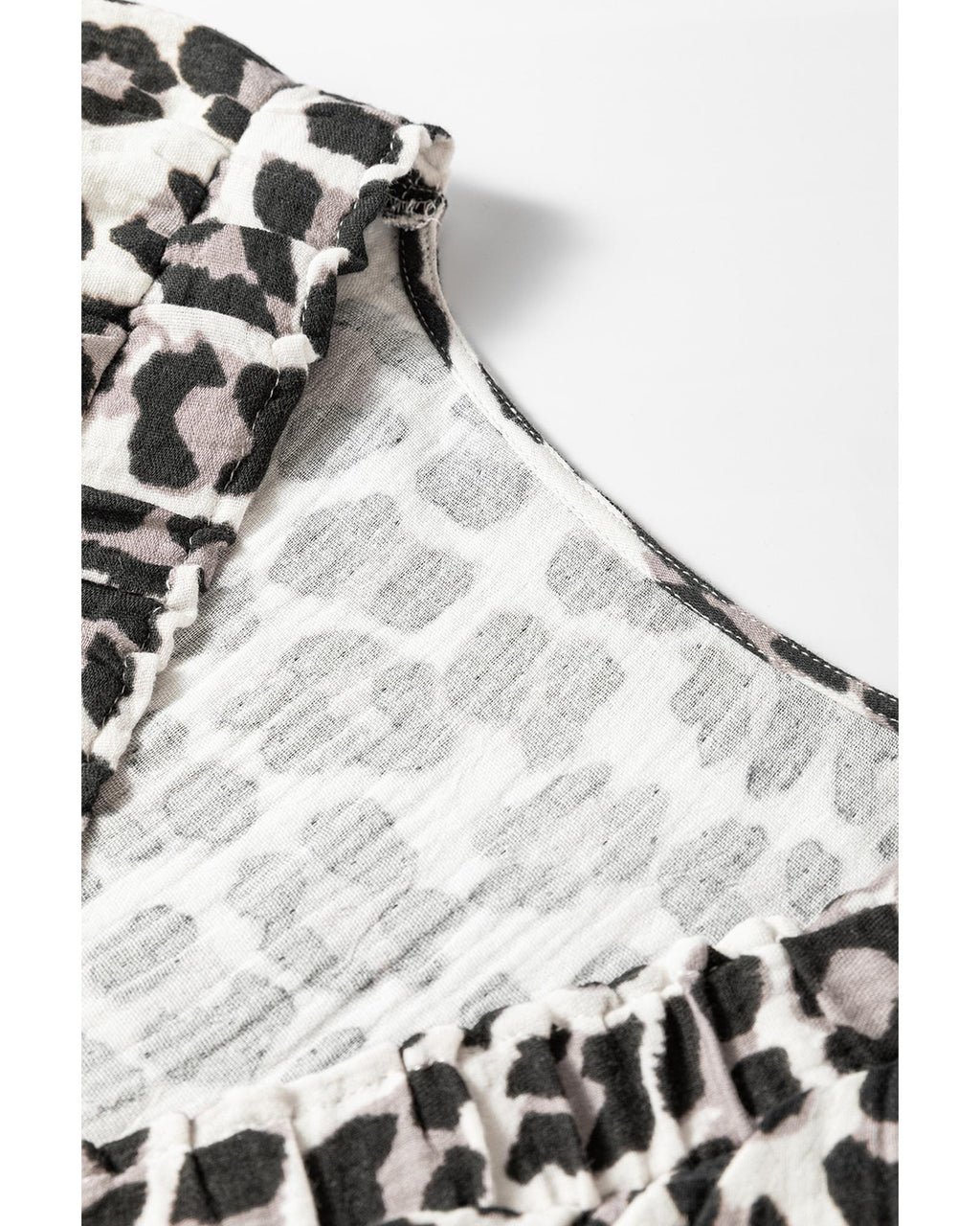 Black Leopard Print Elasticated V Neck 3/4 Puff Sleeve Dress - M