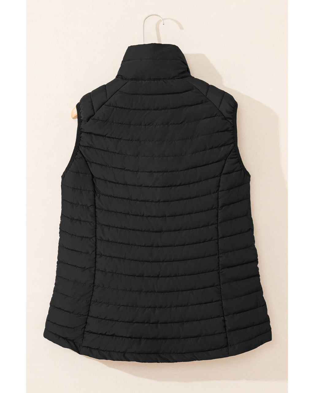 Black Plush Collared Quilted Zipped Puffer Vest - M