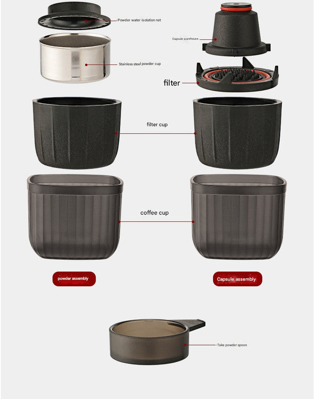 Portable Hand Press Espresso Machine - Compatible with Espresso Capsules and Ground Coffee for Home, Travel, and Outdoor Use