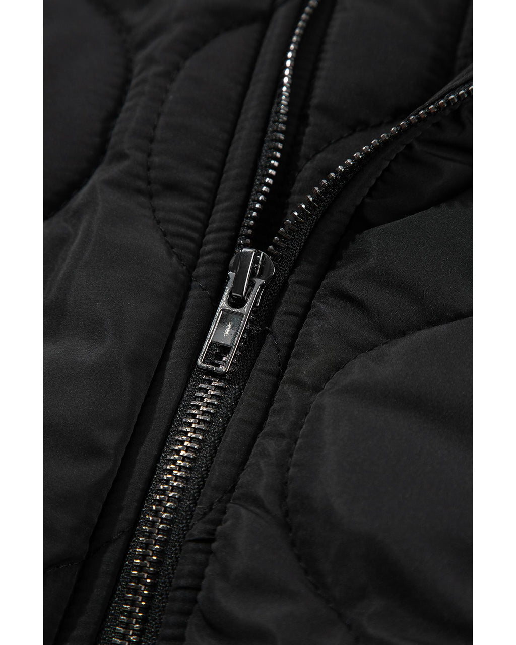 Black Quilted Drawstring Hooded Zip Up Puffer Vest - XL