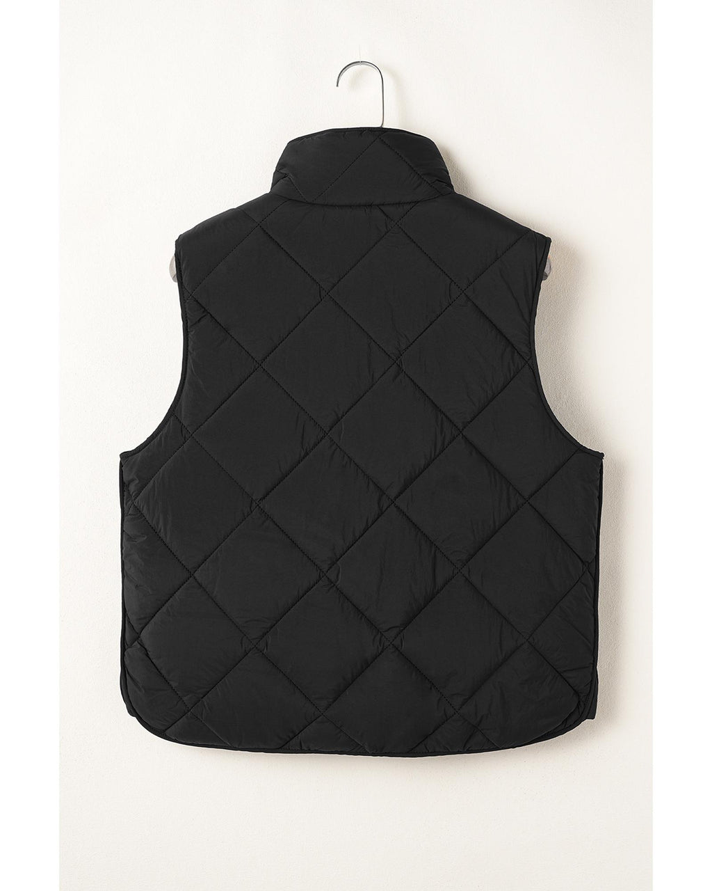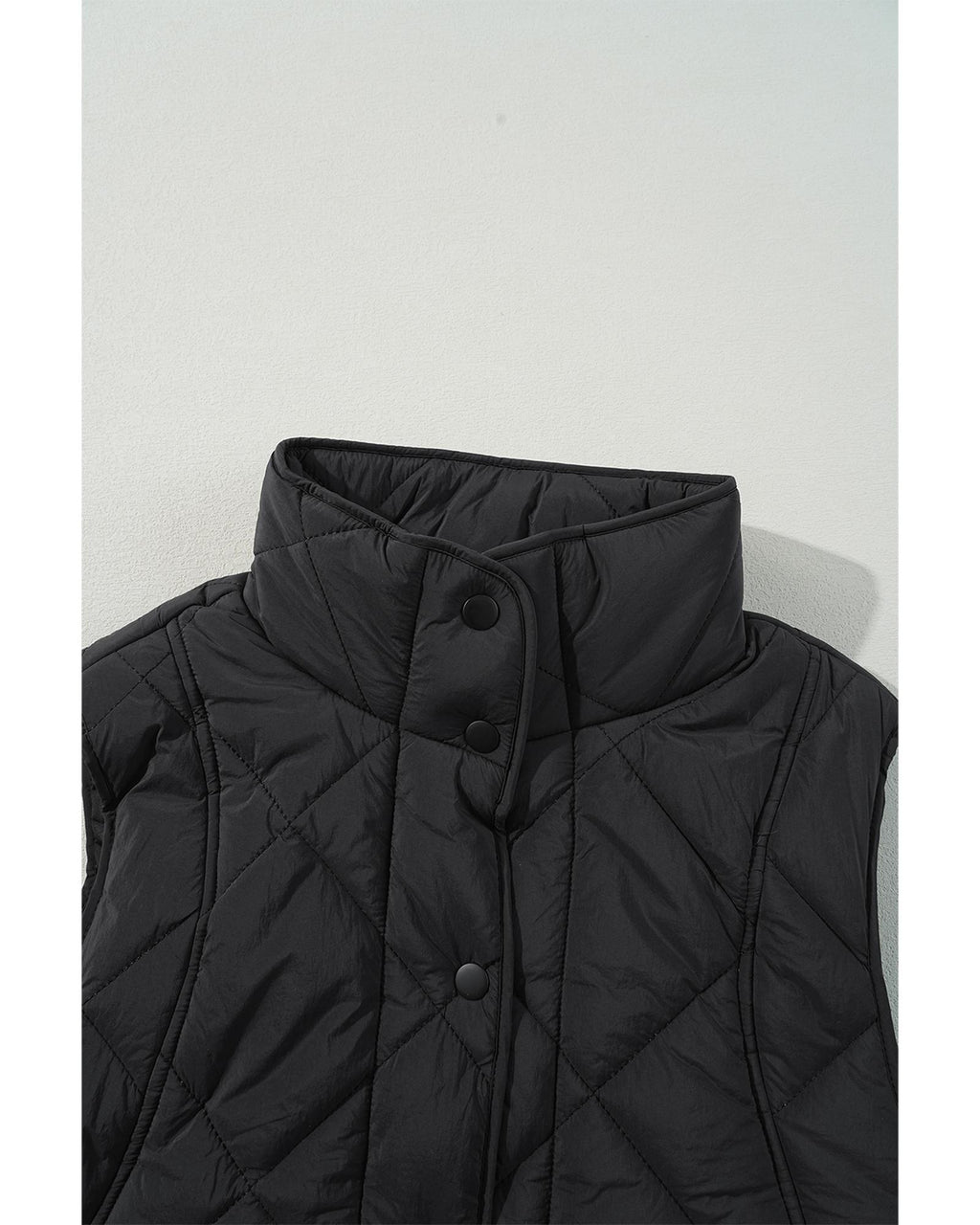 Black Quilted High Neck Button Up Pocket Vest Coat - XL