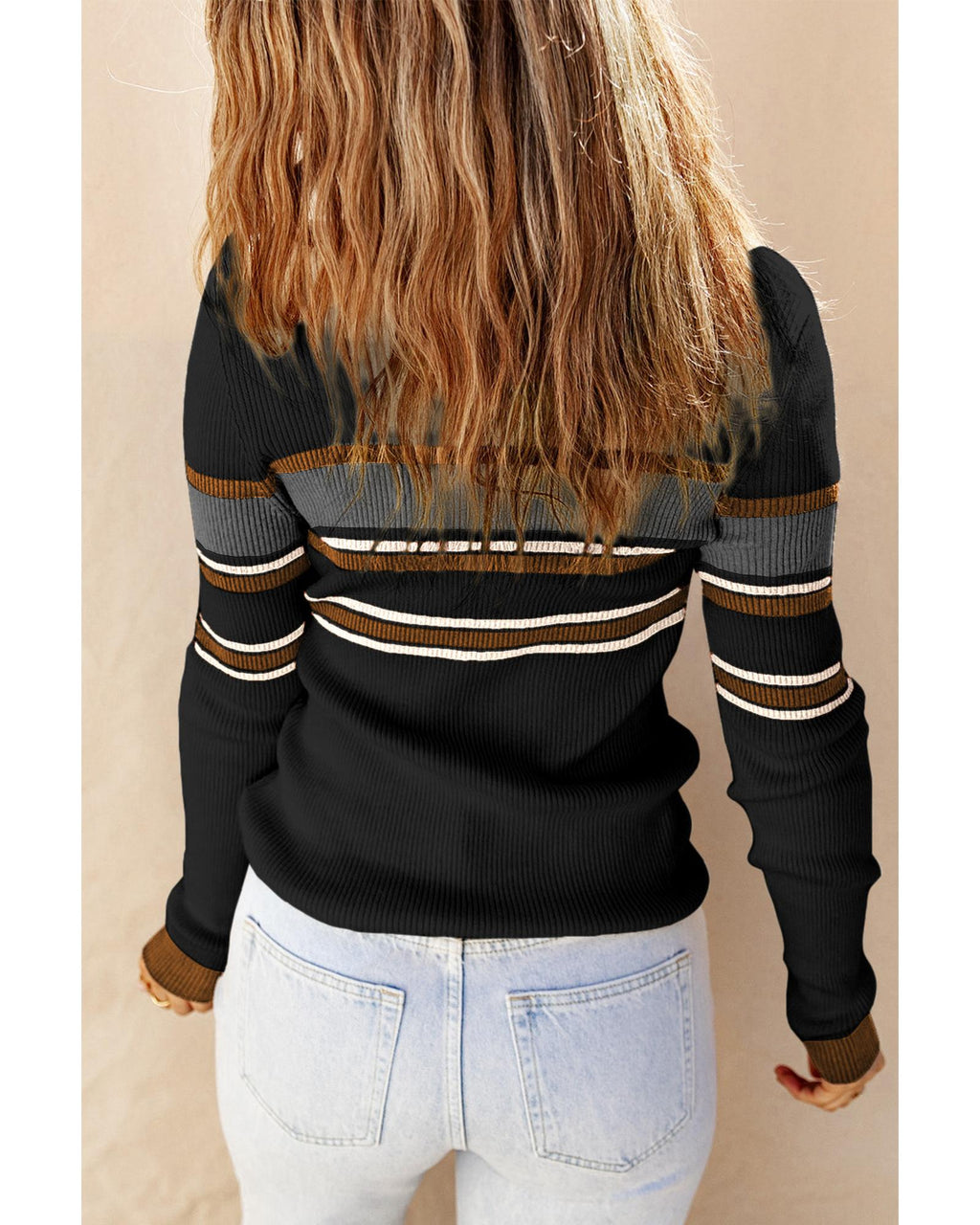 Black Rib Knitted Stripe Detail Henley Sweater - XL