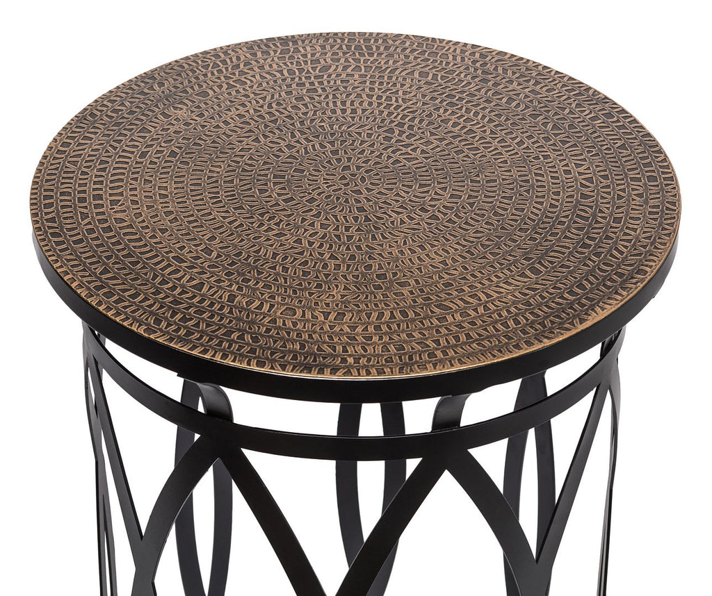 An elegant design, this Black Round Iron Side Table with Cross Legs and Gold Finish Top will create an eye-catching impact wherever placed. Its stylish frame has an intricate design that gives the piece a unique look. With a detailed Gold design carved on top and a beautiful Black finish to the overall piece, this Corner Table is magnificent in its aura. This End Table is perfect for placing your decorations or holding your Telephone, while making a style statement in your Room. With such a versatile design, this Side Table is the only table you will need in your Living Room, Bedroom and Lounge Room.