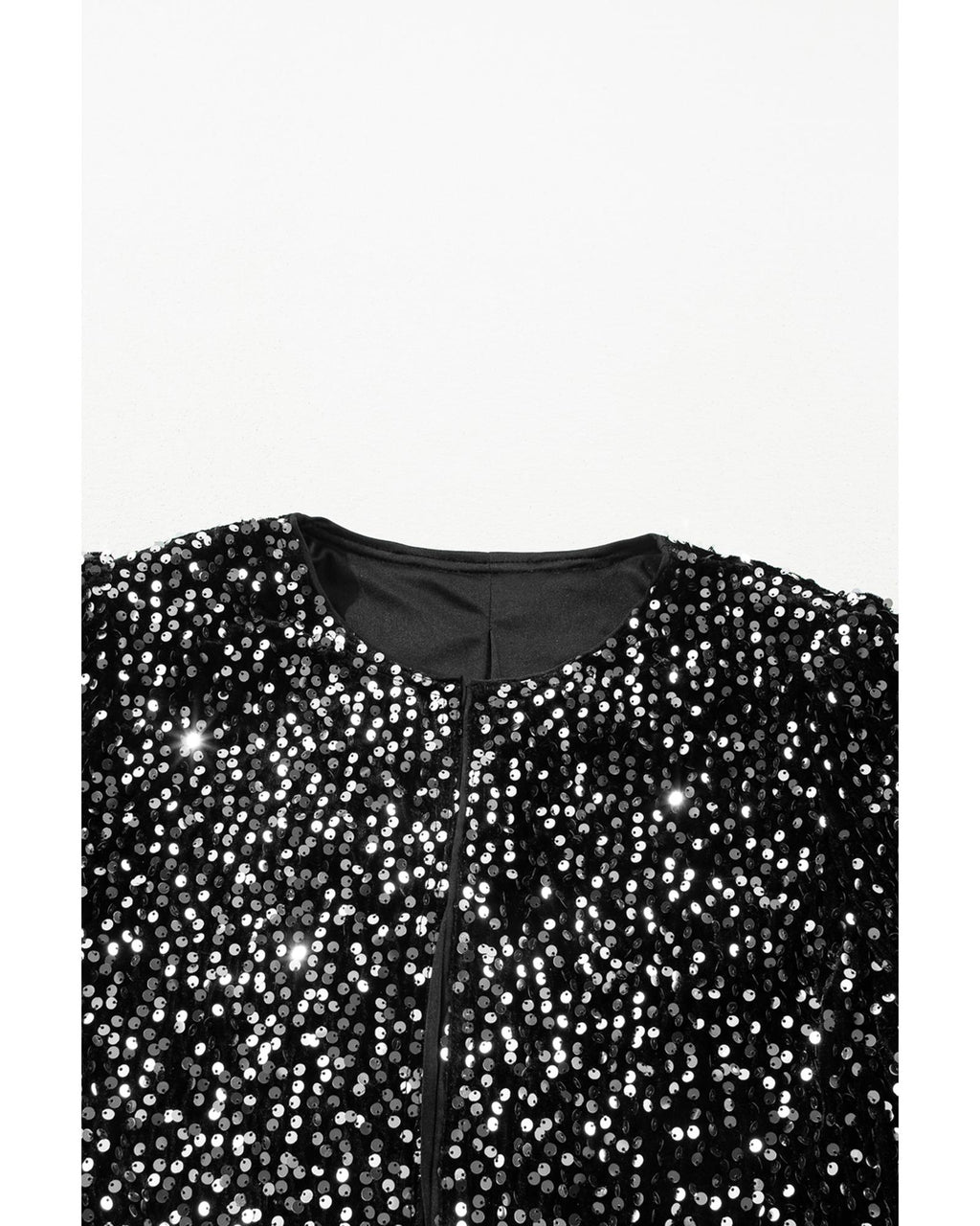 Black Sequined Open Front Cropped Jacket - S